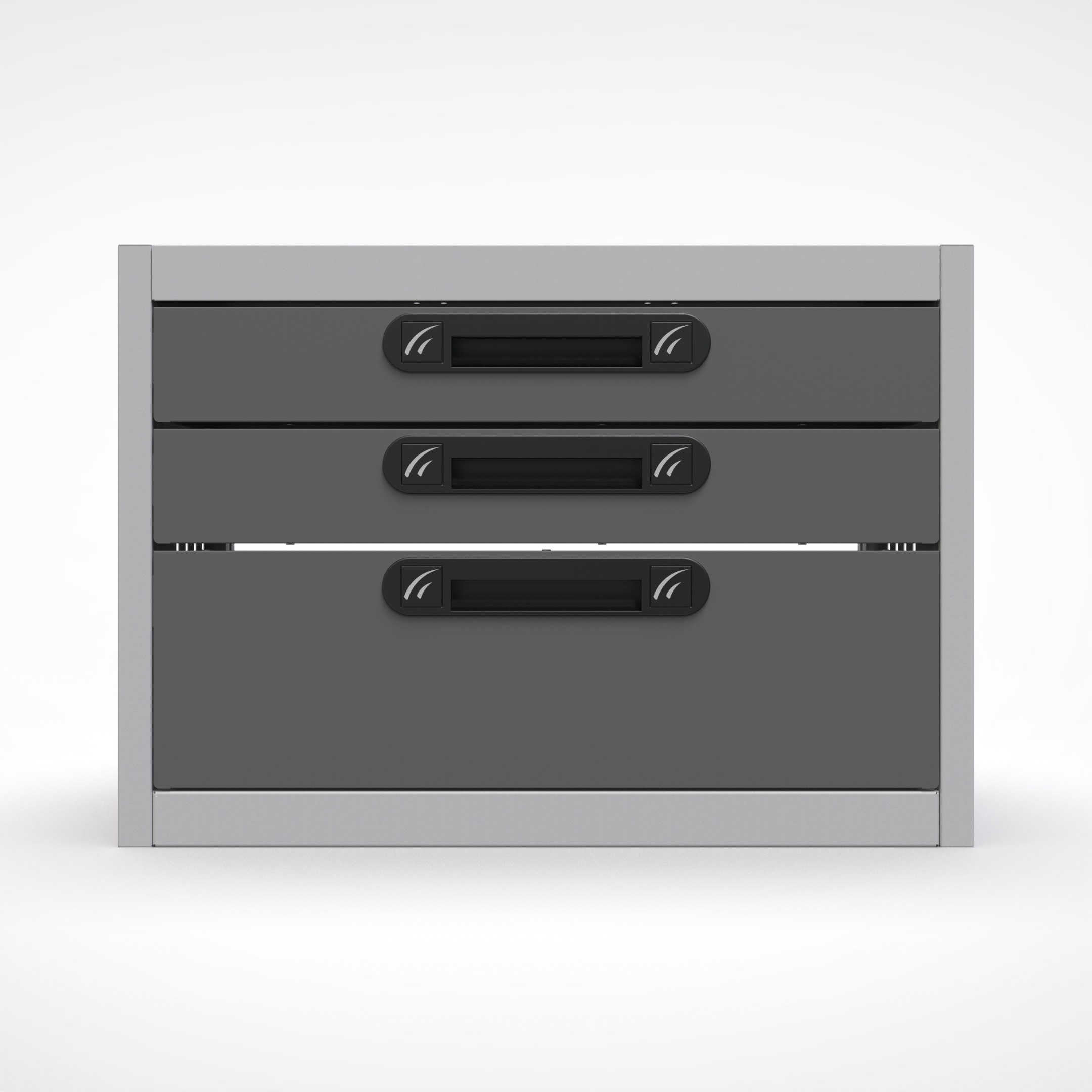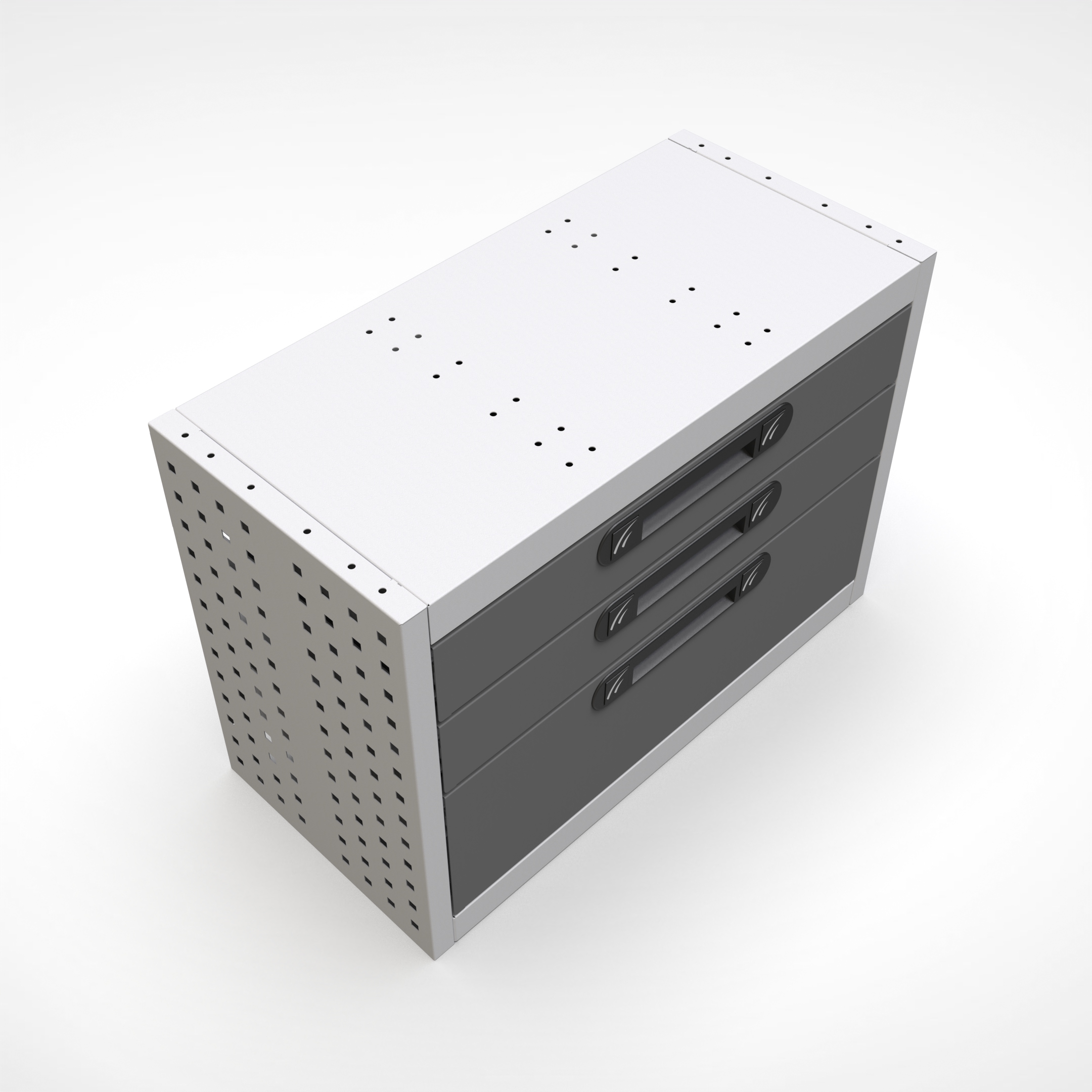 Realizzato in acciaio verniciato, solido e resistente e di dimensioni compatibili con il sistema di moduli DenWorks.