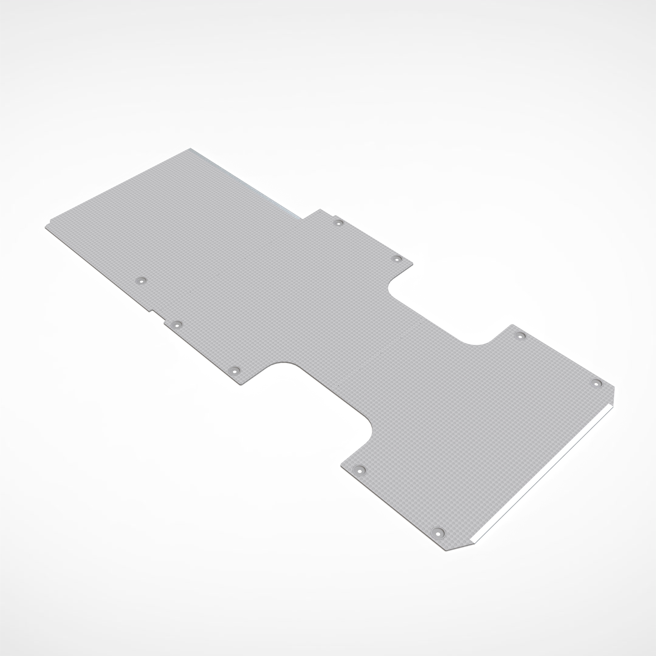 Realizzato in multistrato marino fenolico spessore 12 mm, impermeabile e antiscivolo con bordi in alluminio e tazze in plastica in prossimità dei ganci a terra. E' composto da 3 pannelli che si unisco tra loro con giunture.