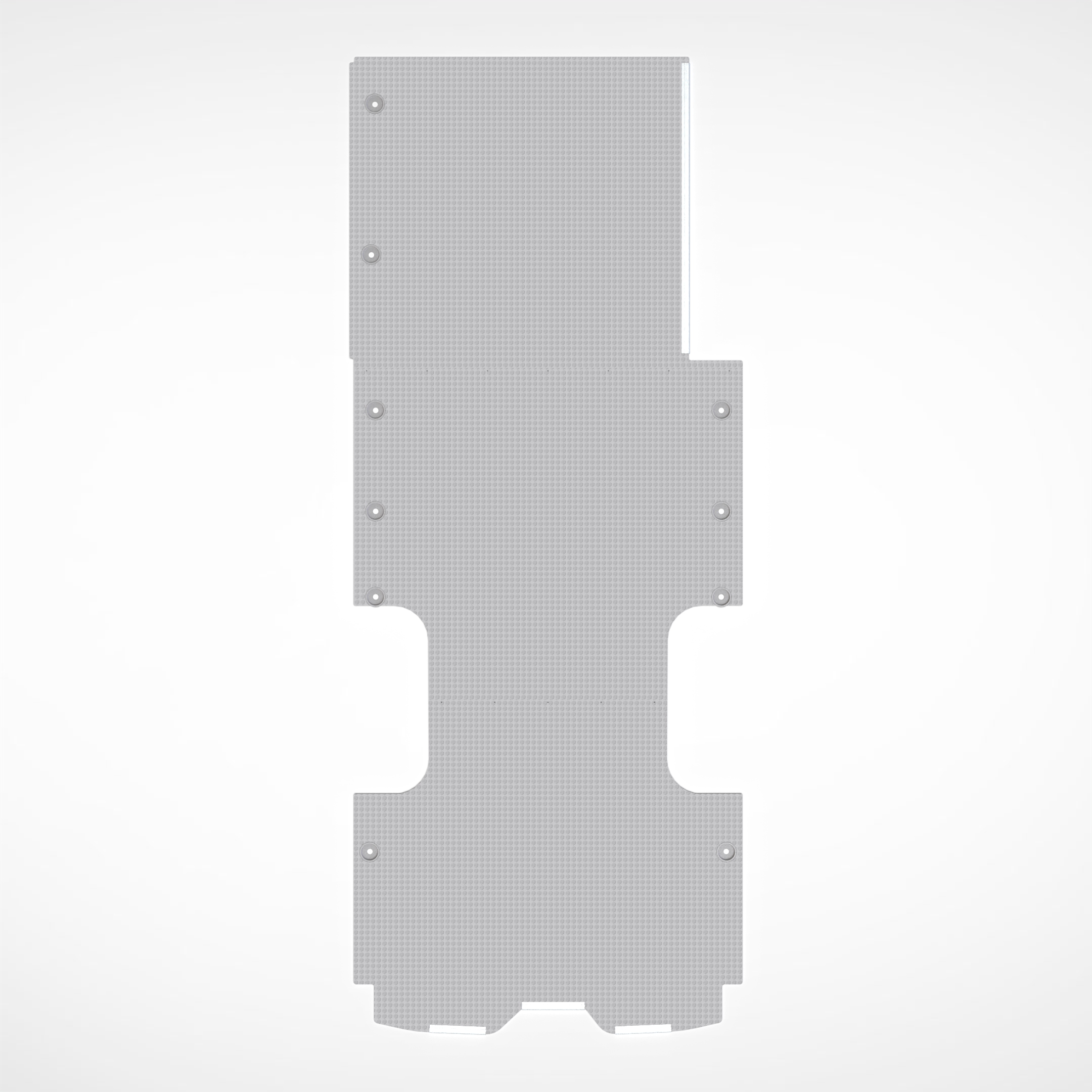 Realizzato in multistrato marino fenolico spessore 12 mm, impermeabile e antiscivolo con bordi in alluminio e tazze in plastica in prossimità dei ganci a terra. E' composto da 3 pannelli che si unisco tra loro con giunture.