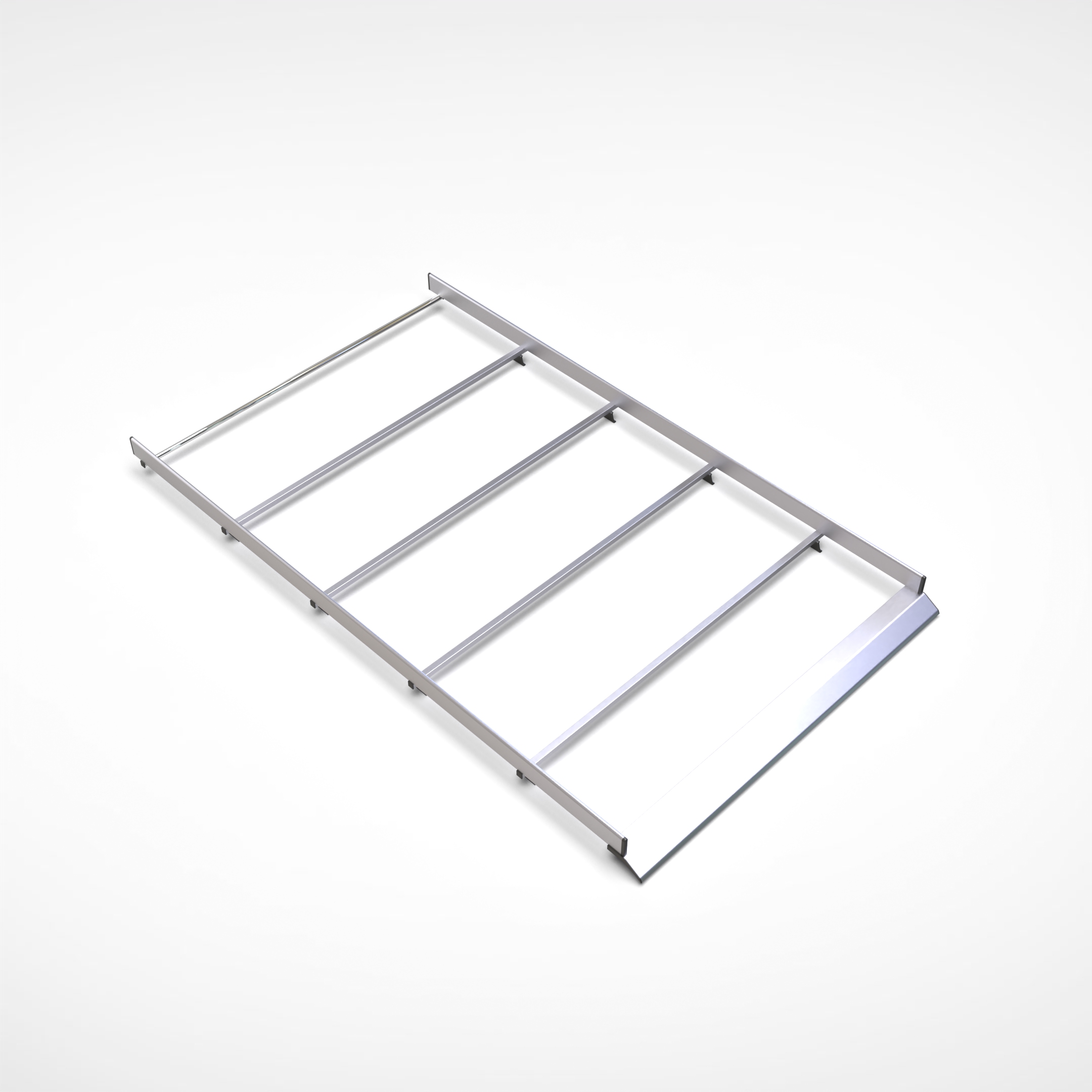 Struttura in acciaio zincato e alluminio, robusta e leggera, con traversi rinforzati, rullo posteriore e profili aerodinamici per ridurre rumore e consumi.