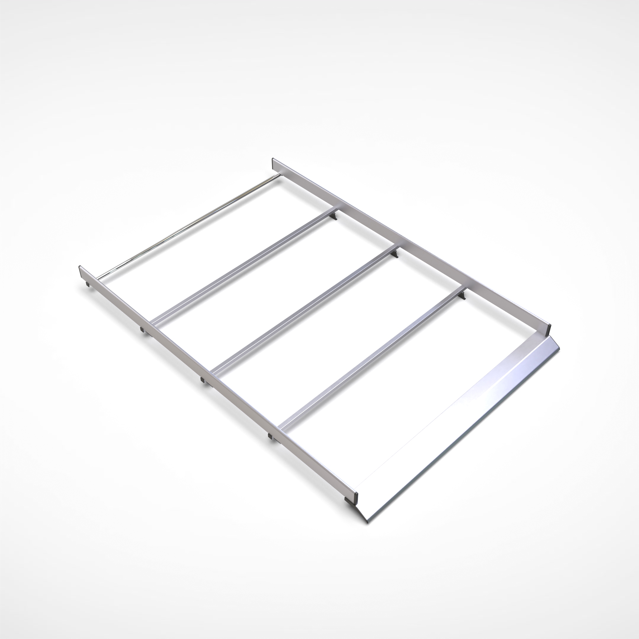 Struttura in acciaio zincato e alluminio, robusta e leggera, con traversi rinforzati, rullo posteriore e profili aerodinamici per ridurre rumore e consumi.