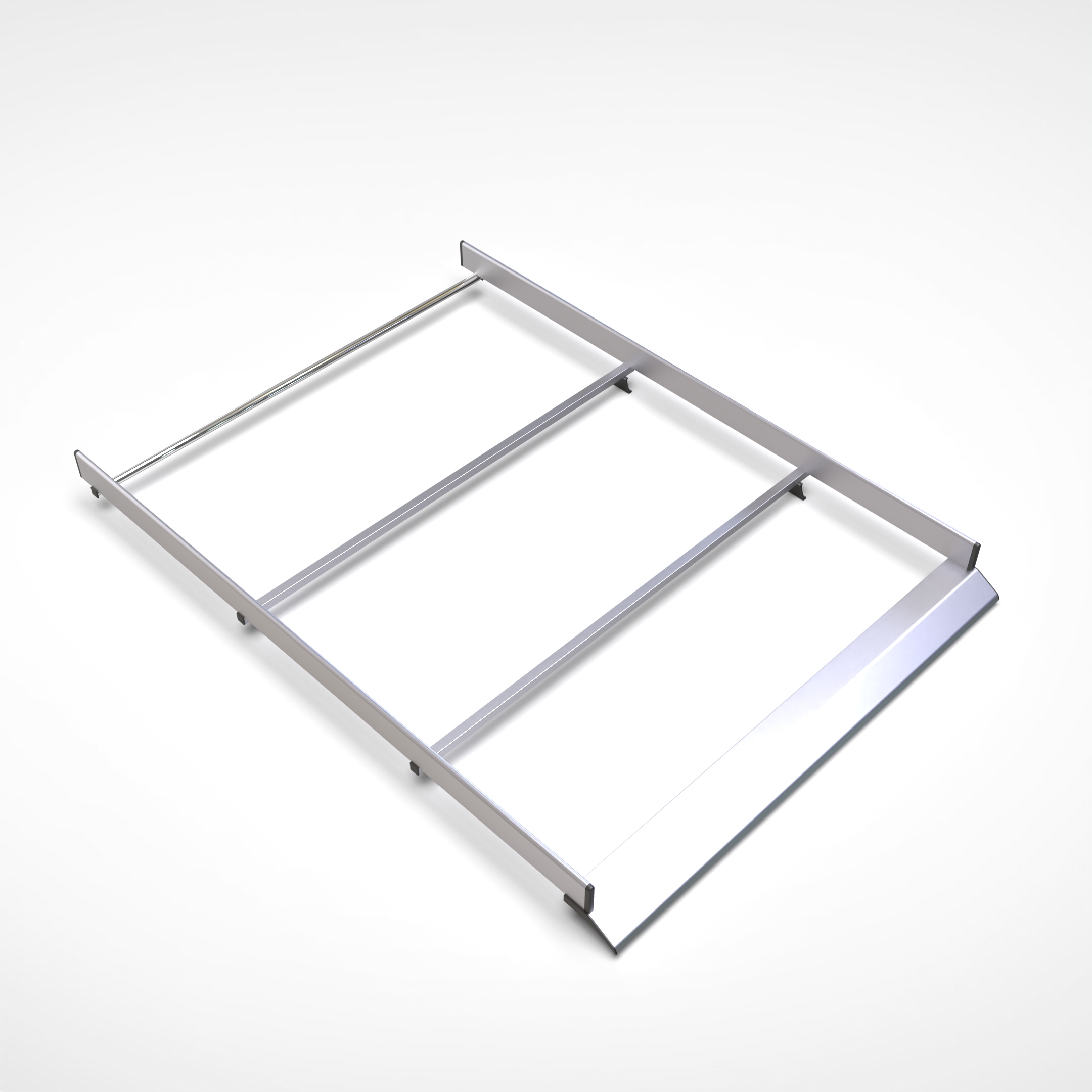 Struttura in acciaio zincato e alluminio, robusta e leggera, con traversi rinforzati, rullo posteriore e profili aerodinamici per ridurre rumore e consumi.