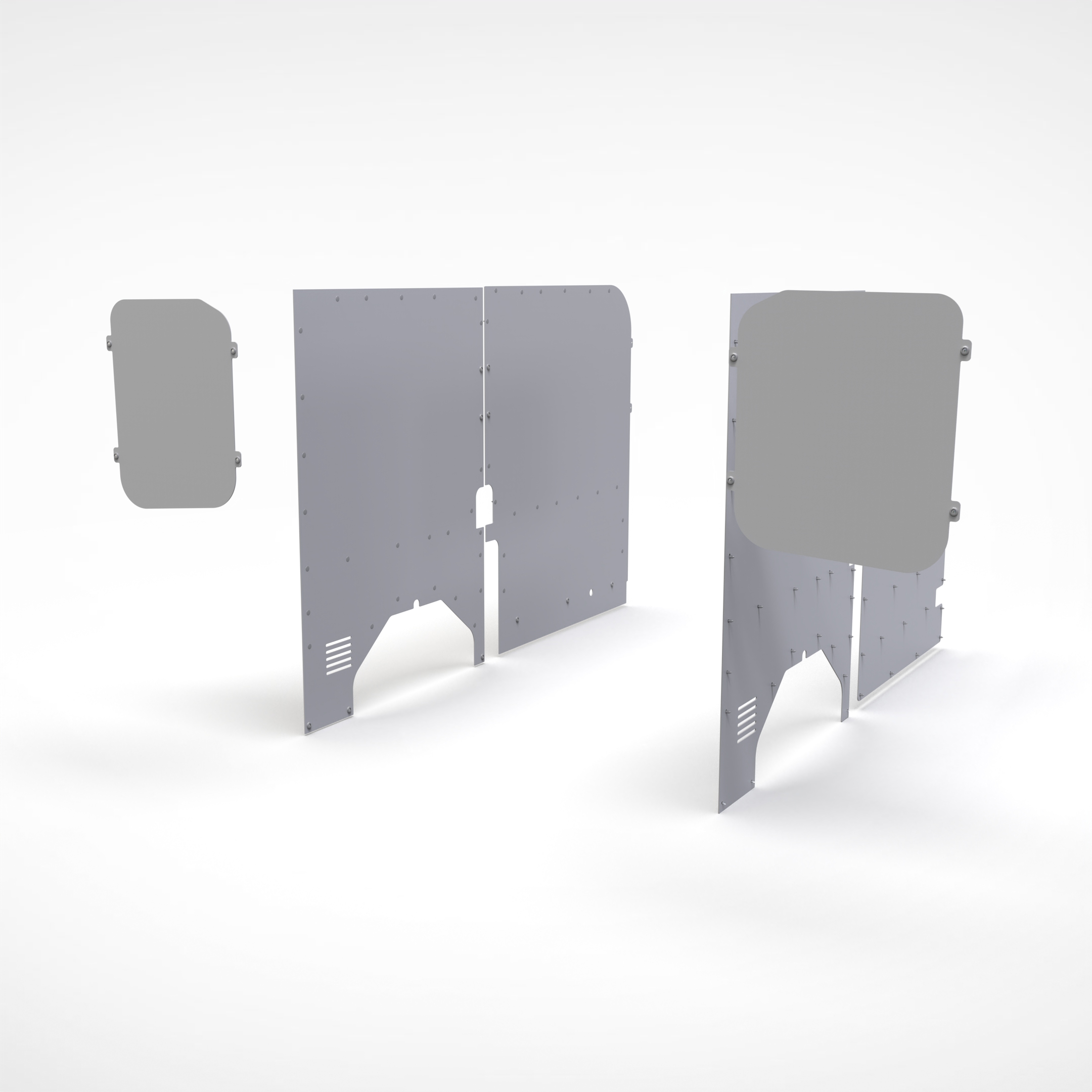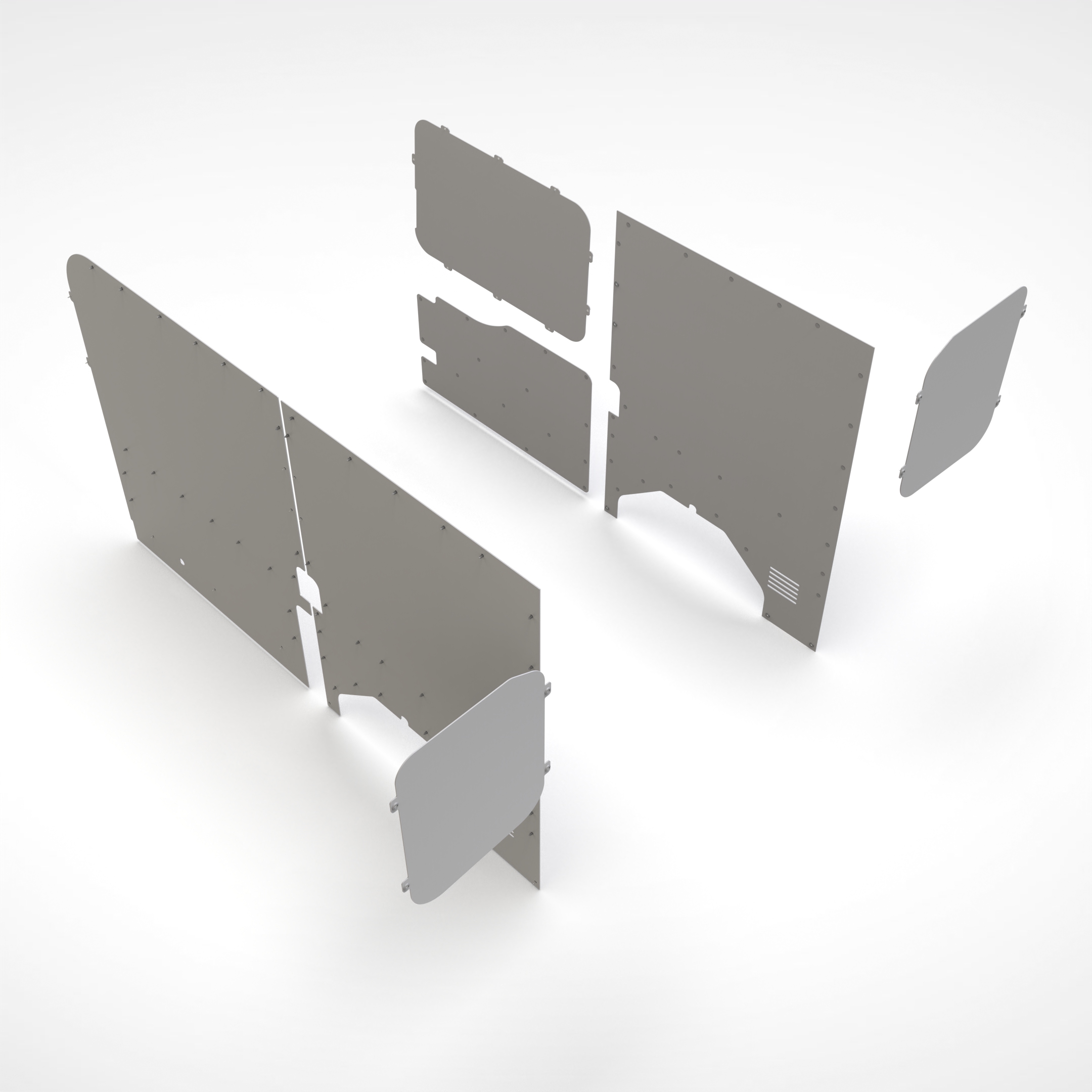 I pannelli sono già sagomati su misura e si applicano alle pareti interne del furgone nei punti predisposti. Istruzioni di montaggio e viteria sono all'interno della confezione.