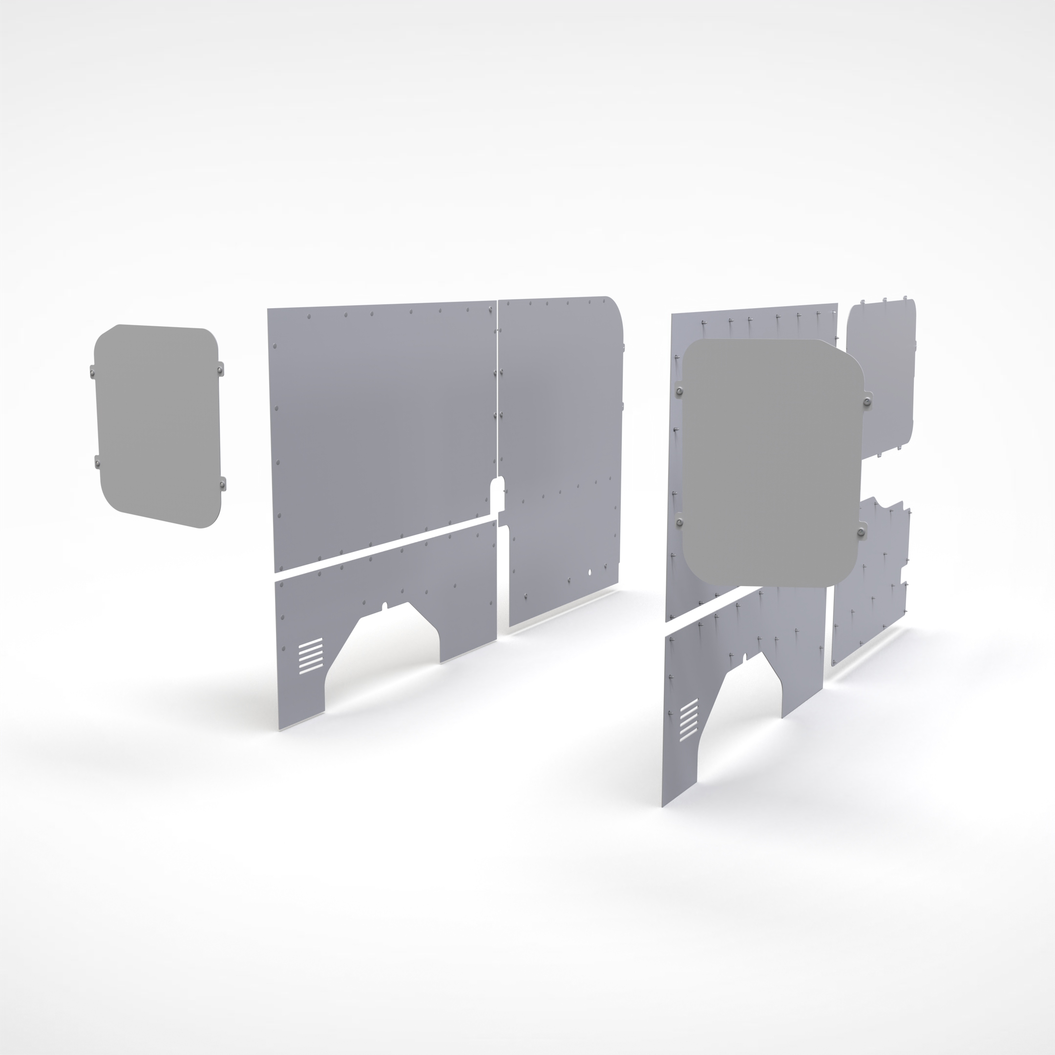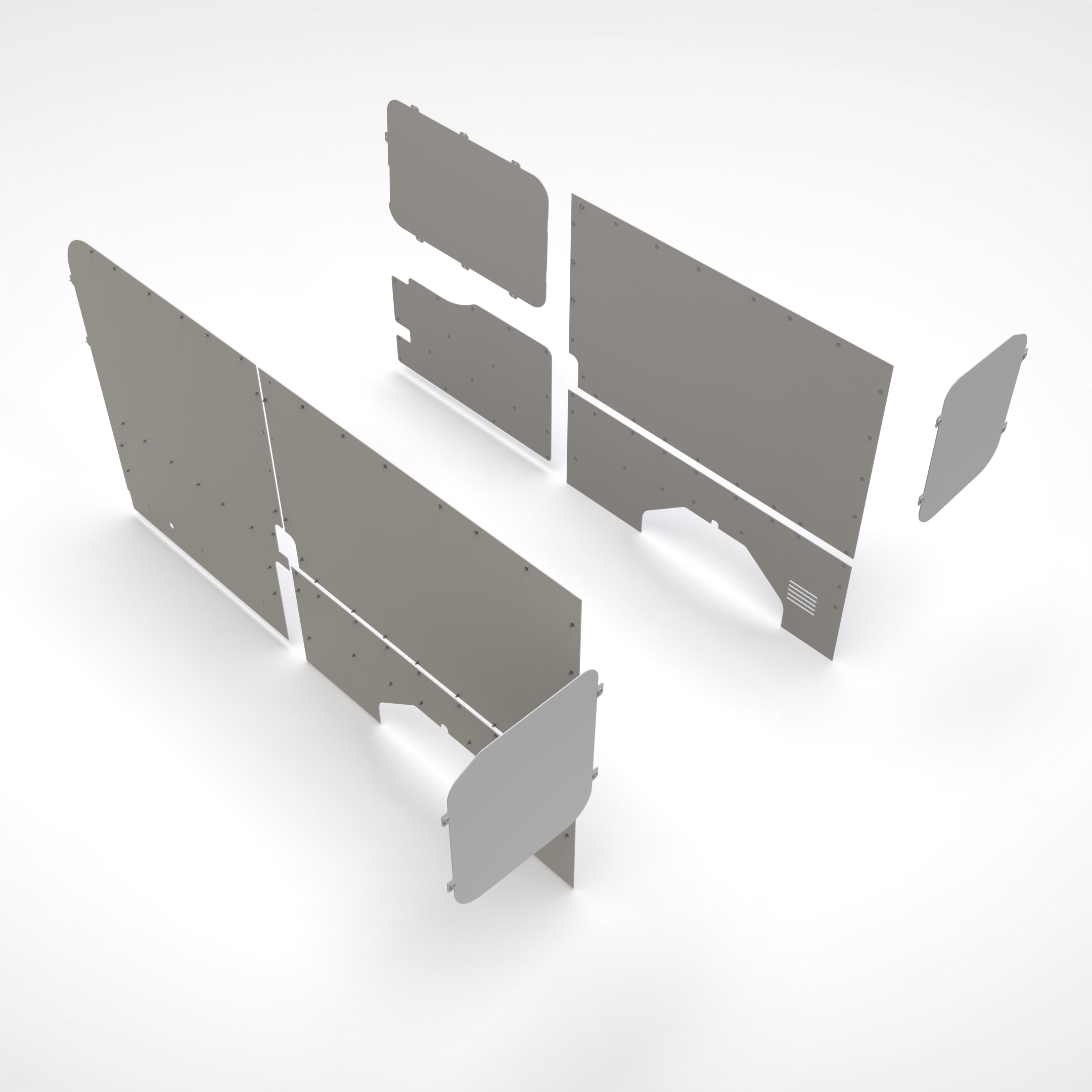Come si installa? I pannelli sono già sagomati su misura e si applicano alle pareti interne del furgone nei punti predisposti. Istruzioni di montaggio e viteria sono all'interno della confezione.