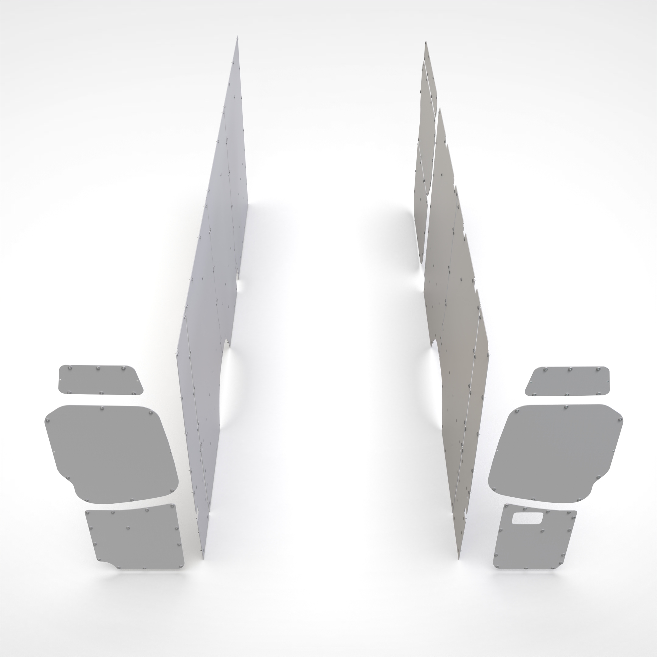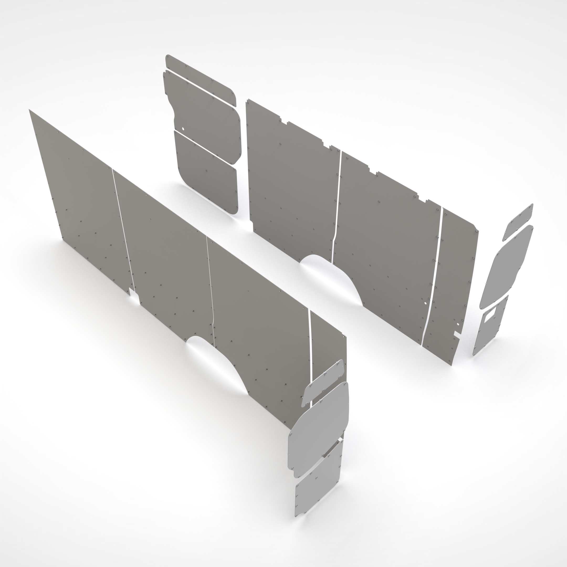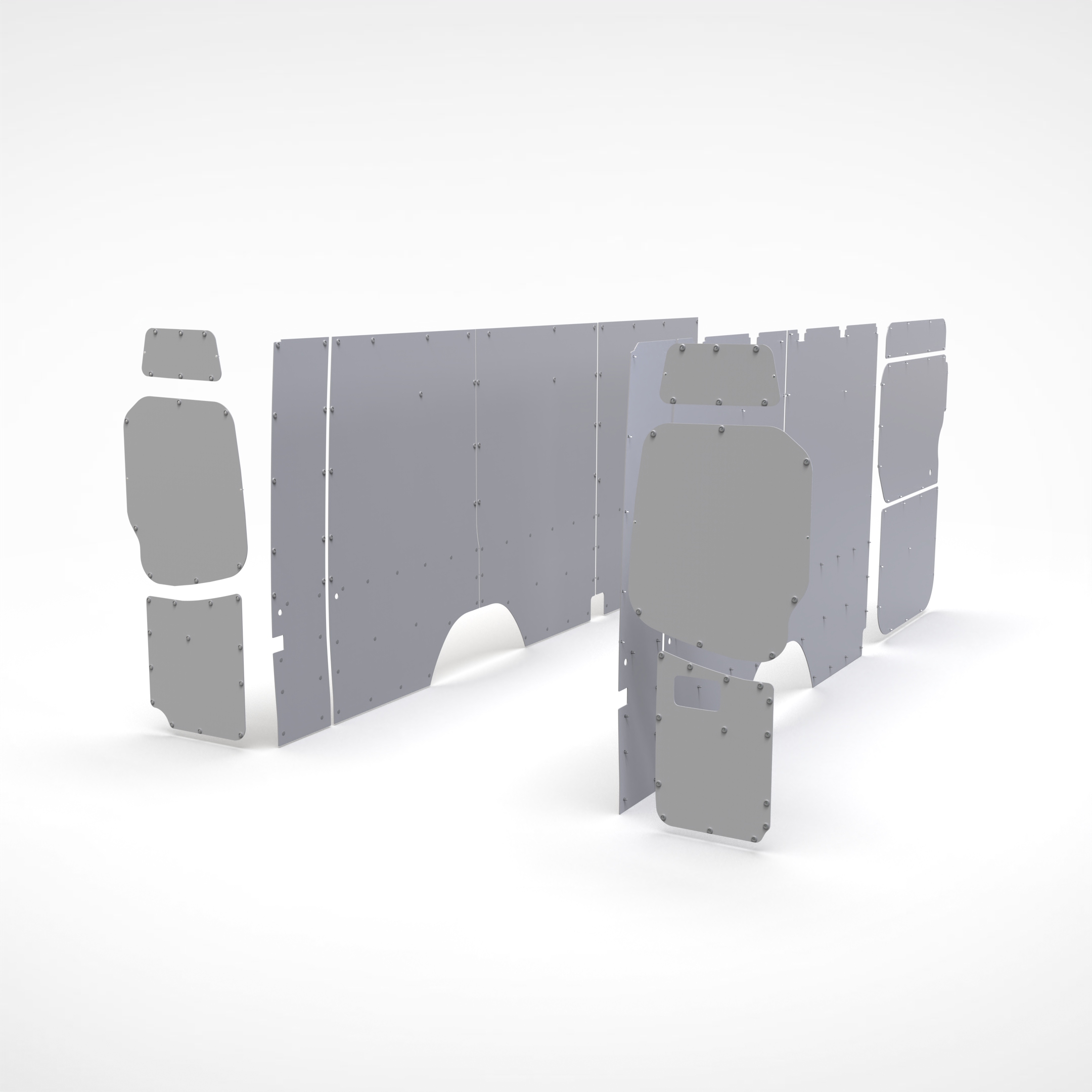 I pannelli sono già sagomati su misura e si applicano alle pareti interne del furgone nei punti predisposti. Istruzioni di montaggio e viteria sono all'interno della confezione.