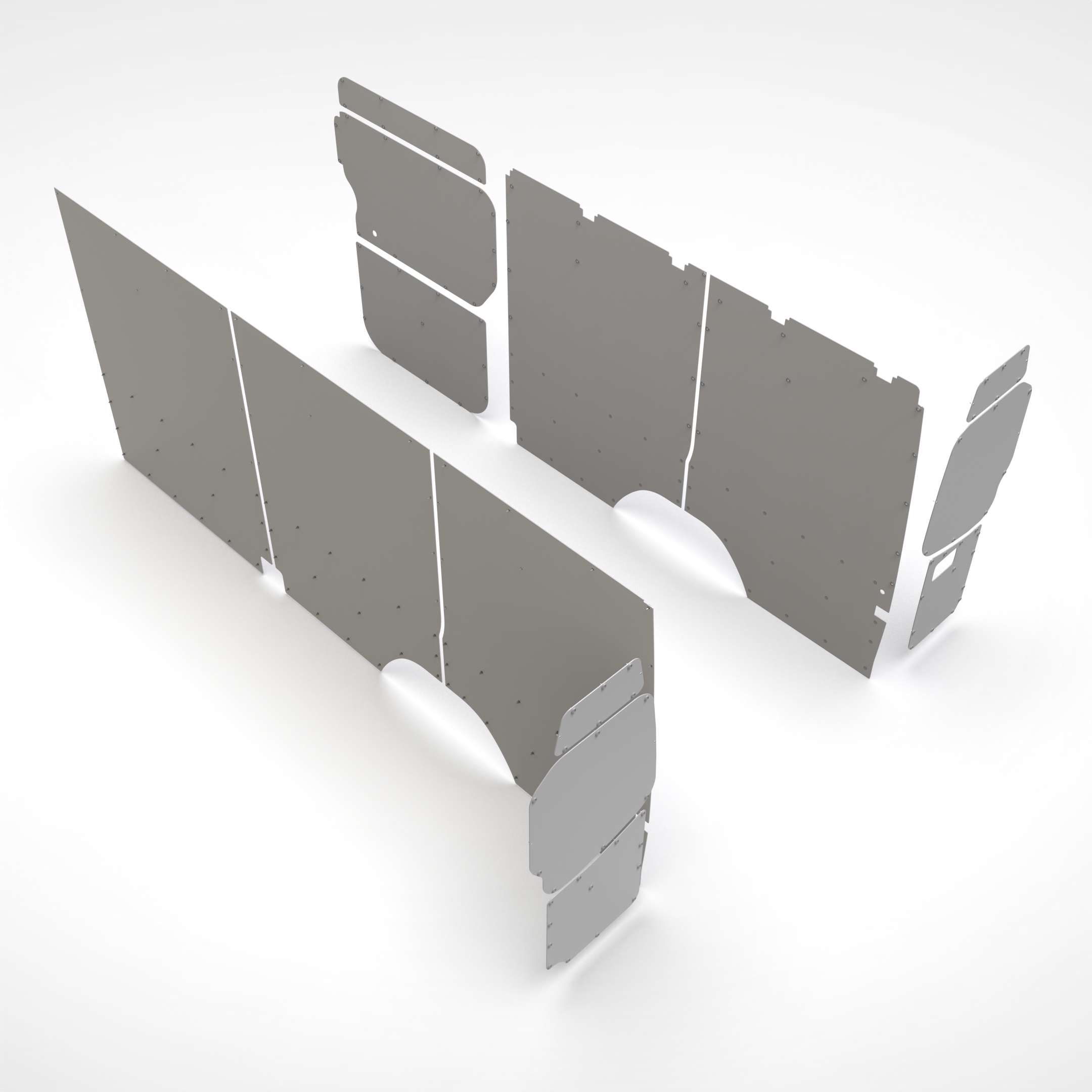 I pannelli sono già sagomati su misura e si applicano alle pareti interne del furgone nei punti predisposti. Istruzioni di montaggio e viteria sono all'interno della confezione.