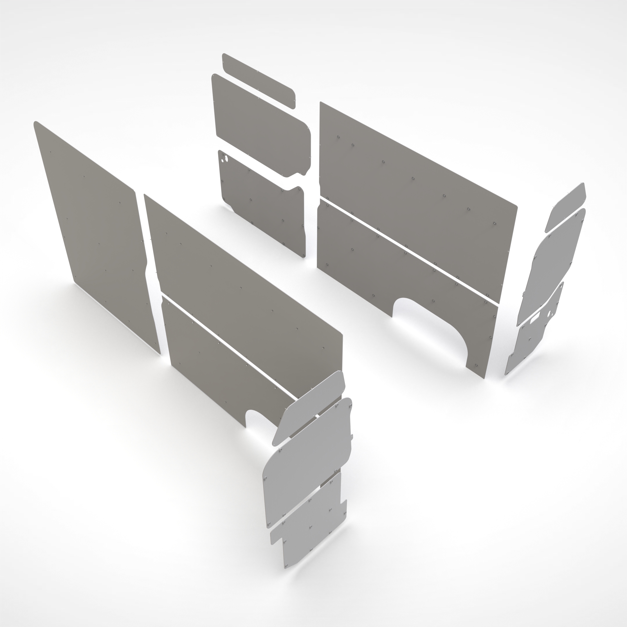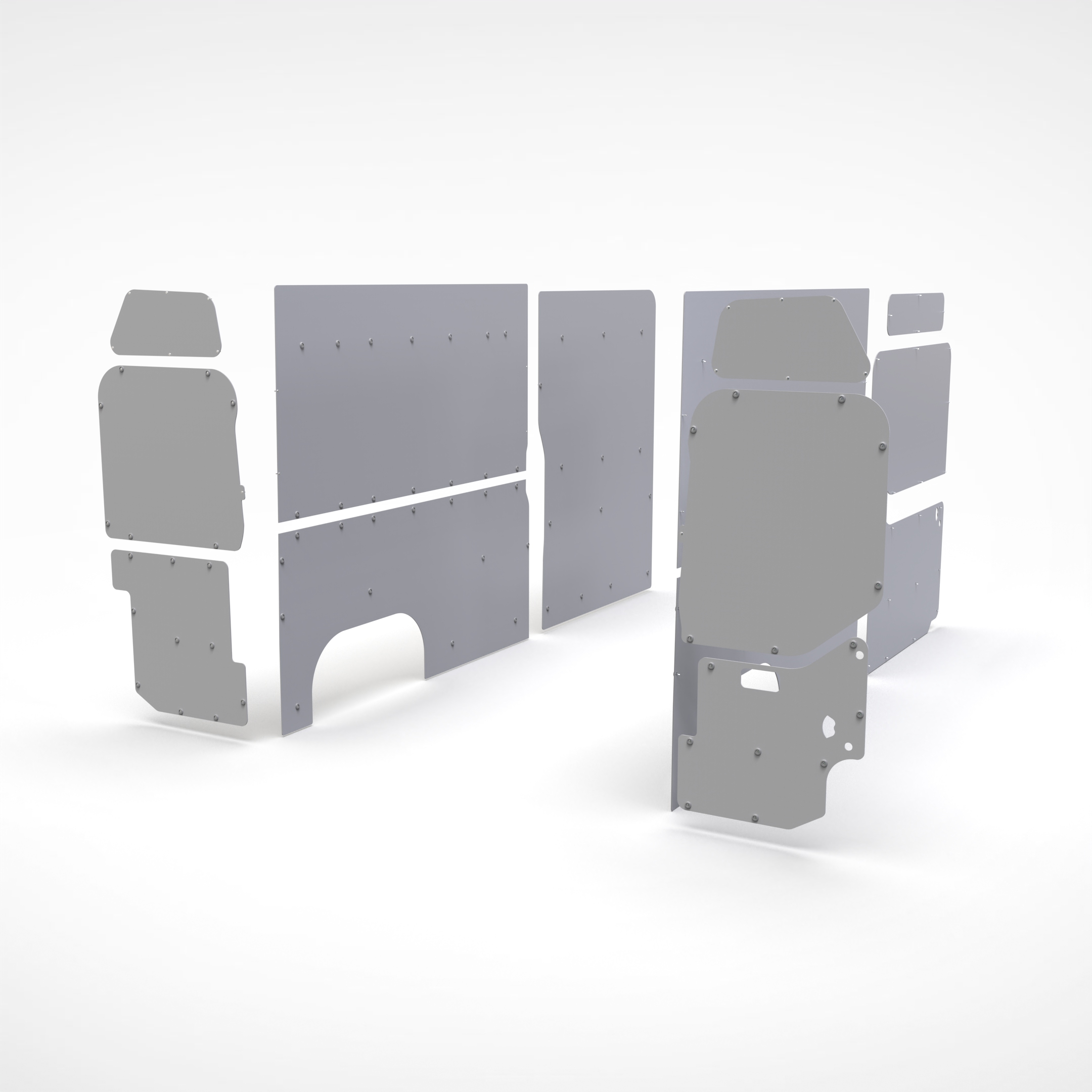 I pannelli sono già sagomati su misura e si applicano alle pareti interne del furgone nei punti predisposti. Istruzioni di montaggio e viteria sono all'interno della confezione.