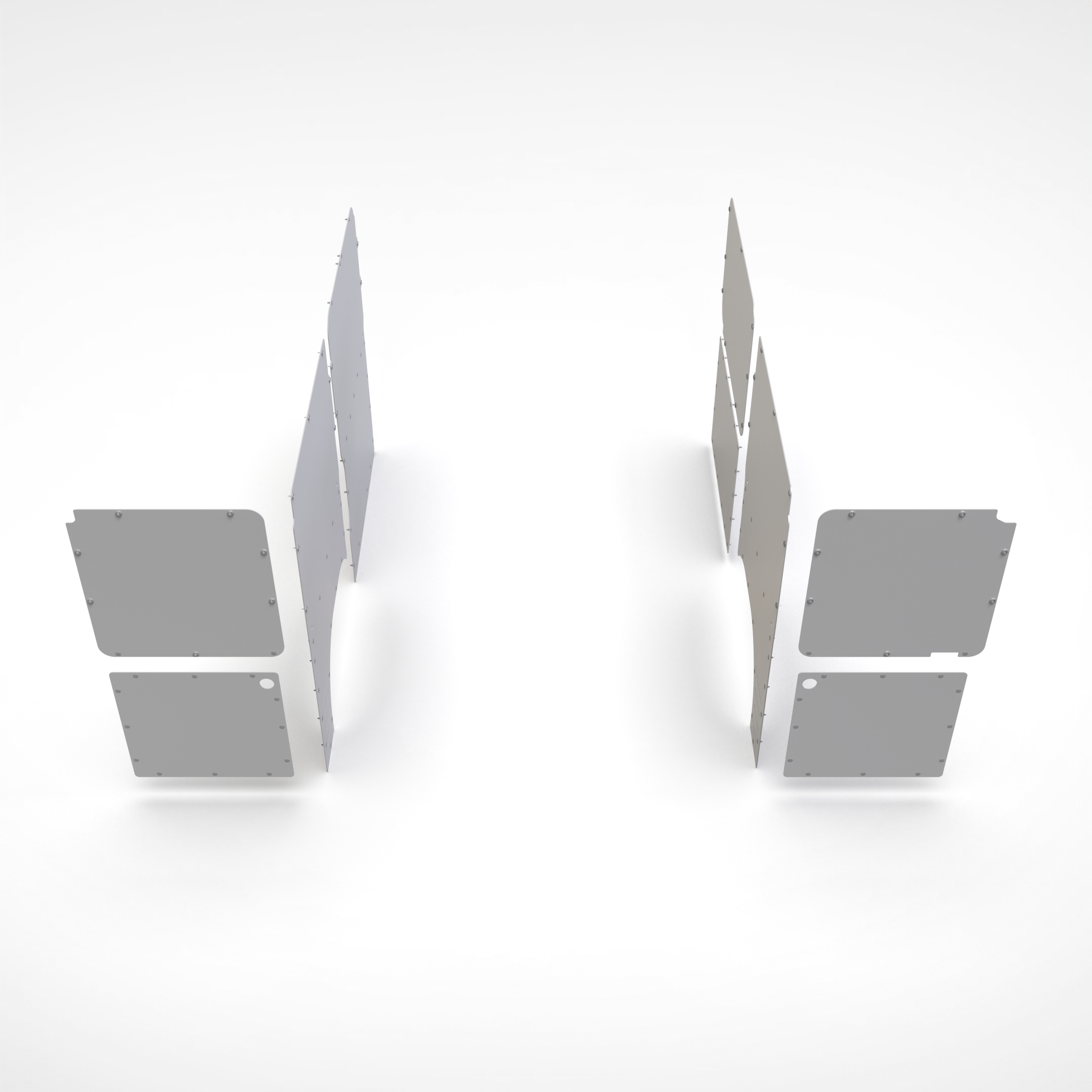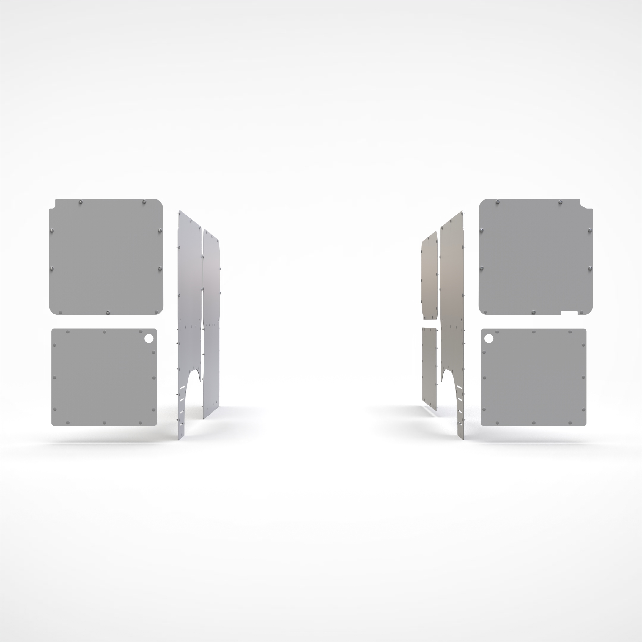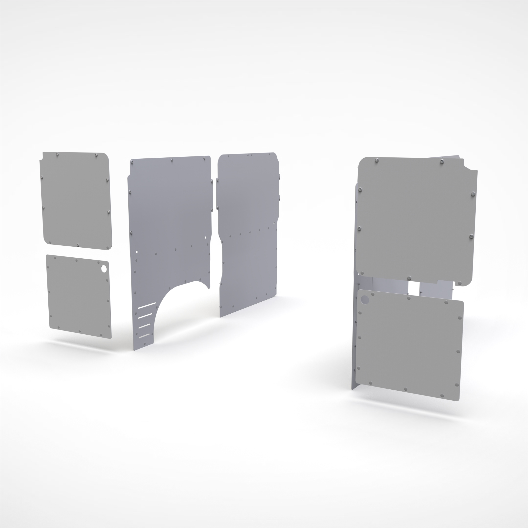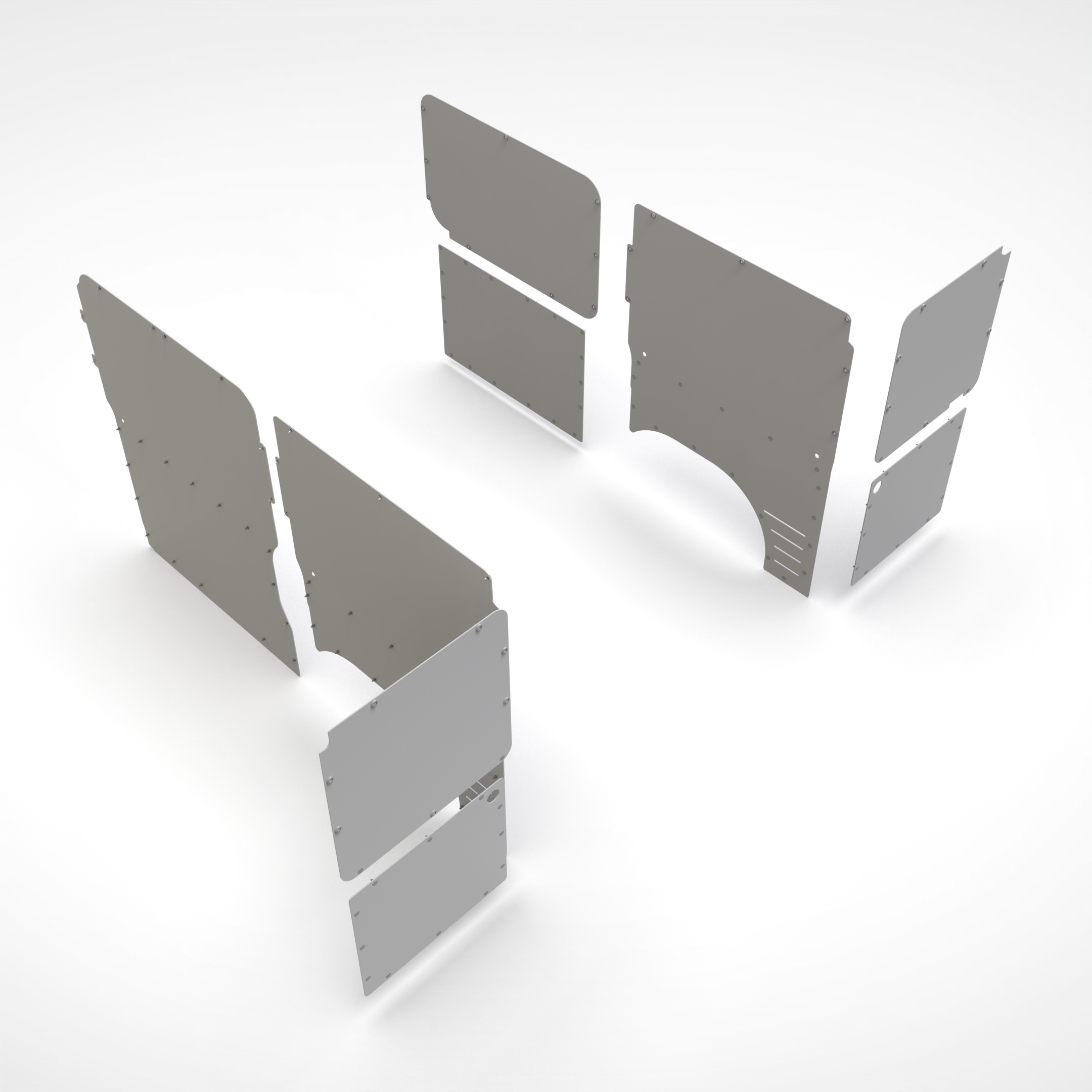 I pannelli sono già sagomati su misura e si applicano alle pareti interne del furgone nei punti predisposti. Istruzioni di montaggio e viteria sono all'interno della confezione.