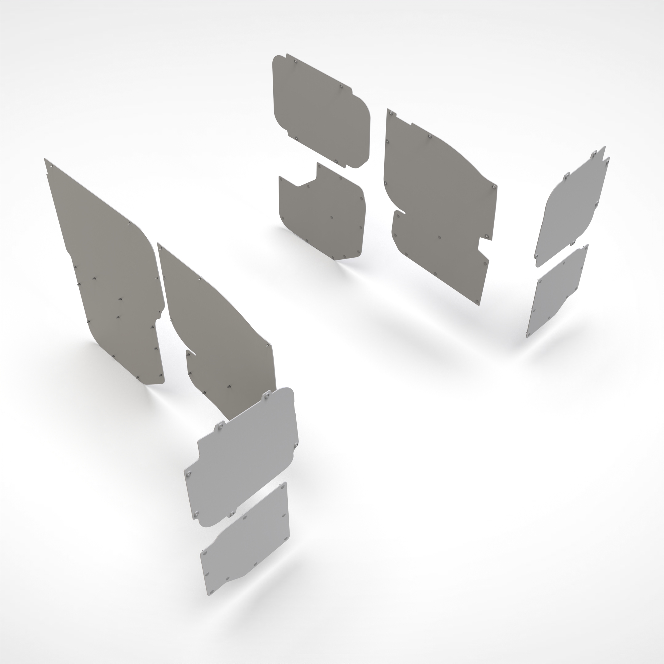 I pannelli sono già sagomati su misura e si applicano alle pareti interne del furgone nei punti predisposti. Istruzioni di montaggio e viteria sono all'interno della confezione.