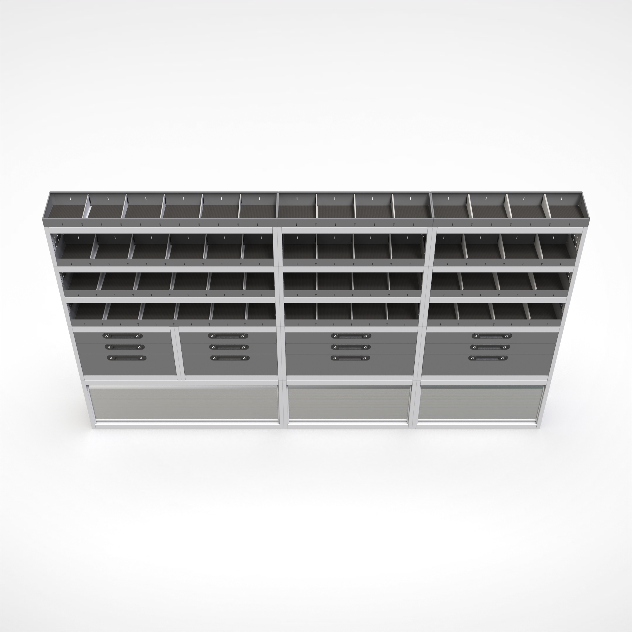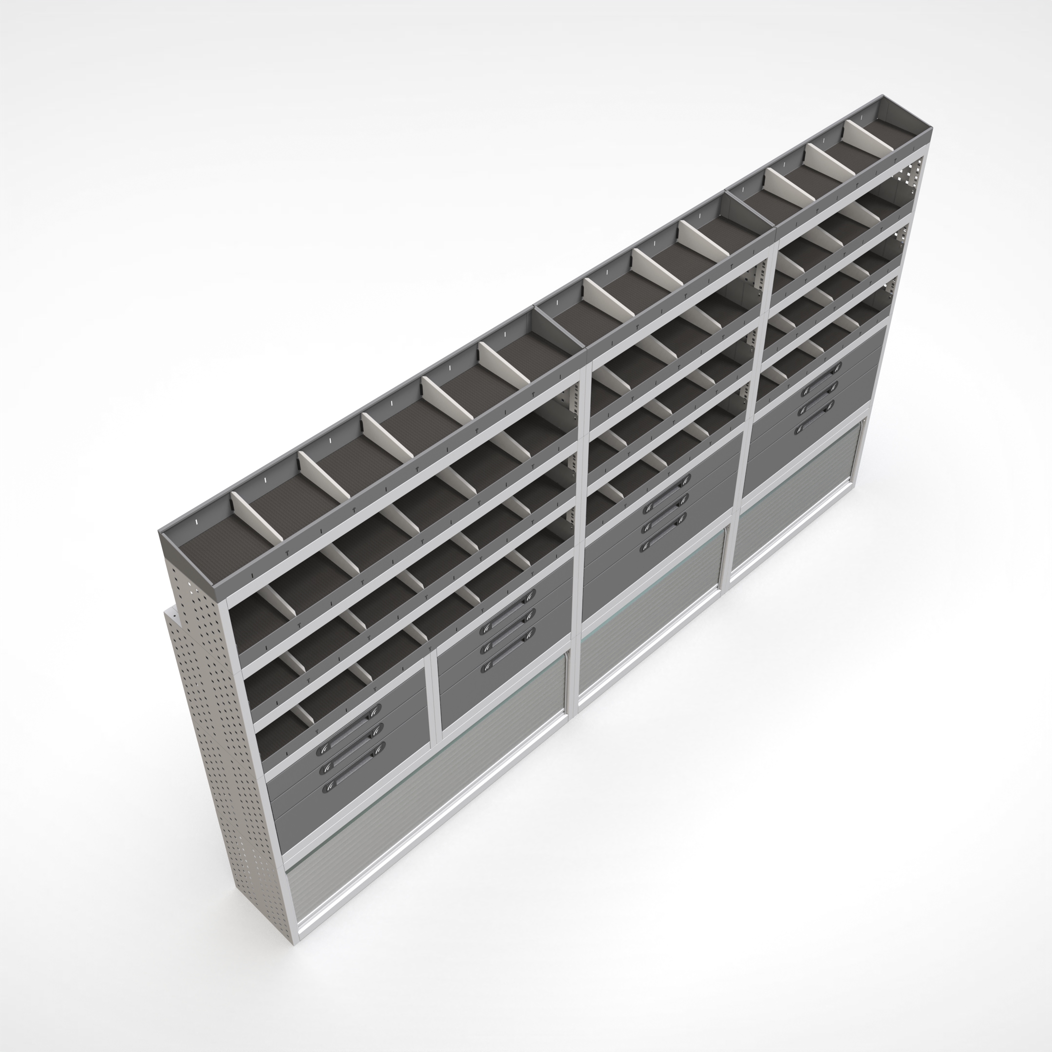 A cosa serve questo prodotto? Ottimizza lo spazio interno del furgone permettendo di organizzare attrezzi, minuterie e materiali in modo ordinato e sempre accessibile.