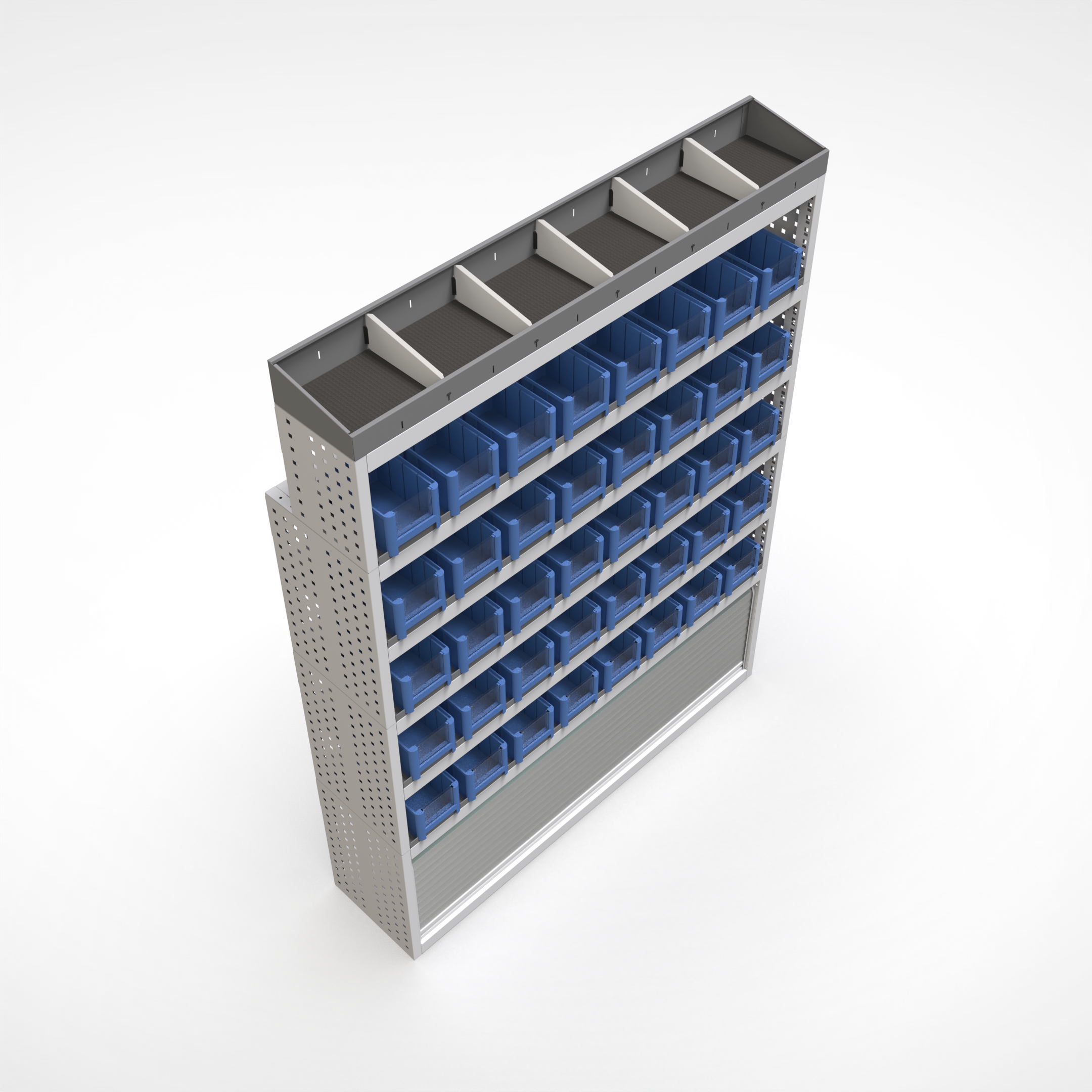 Ottimizza lo spazio interno del furgone permettendo di organizzare attrezzi, minuterie e materiali in modo ordinato e sempre accessibile.