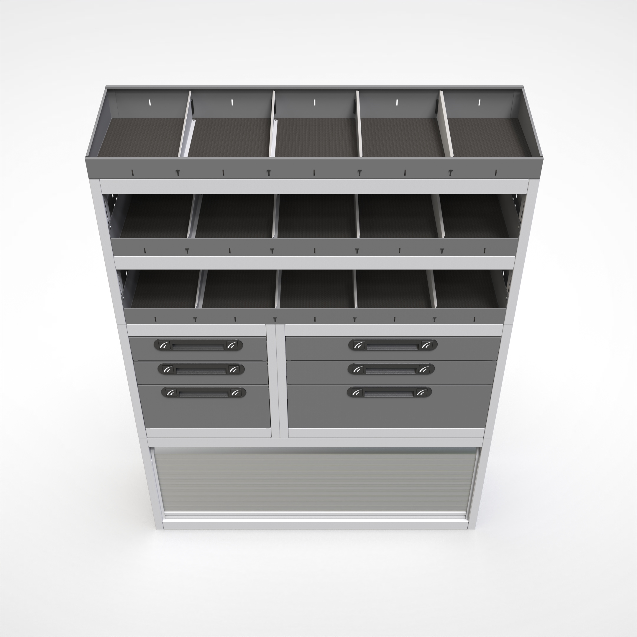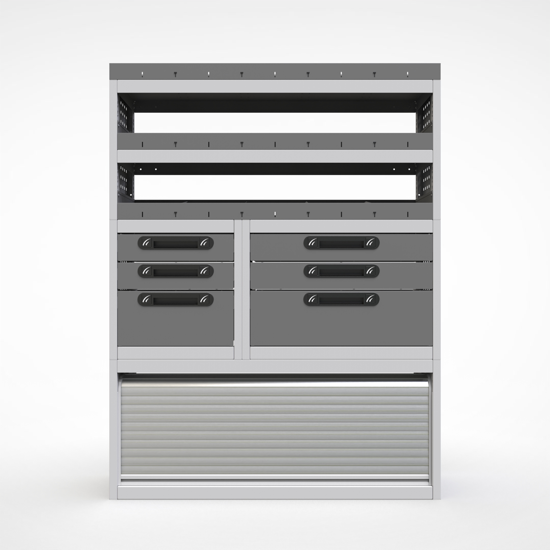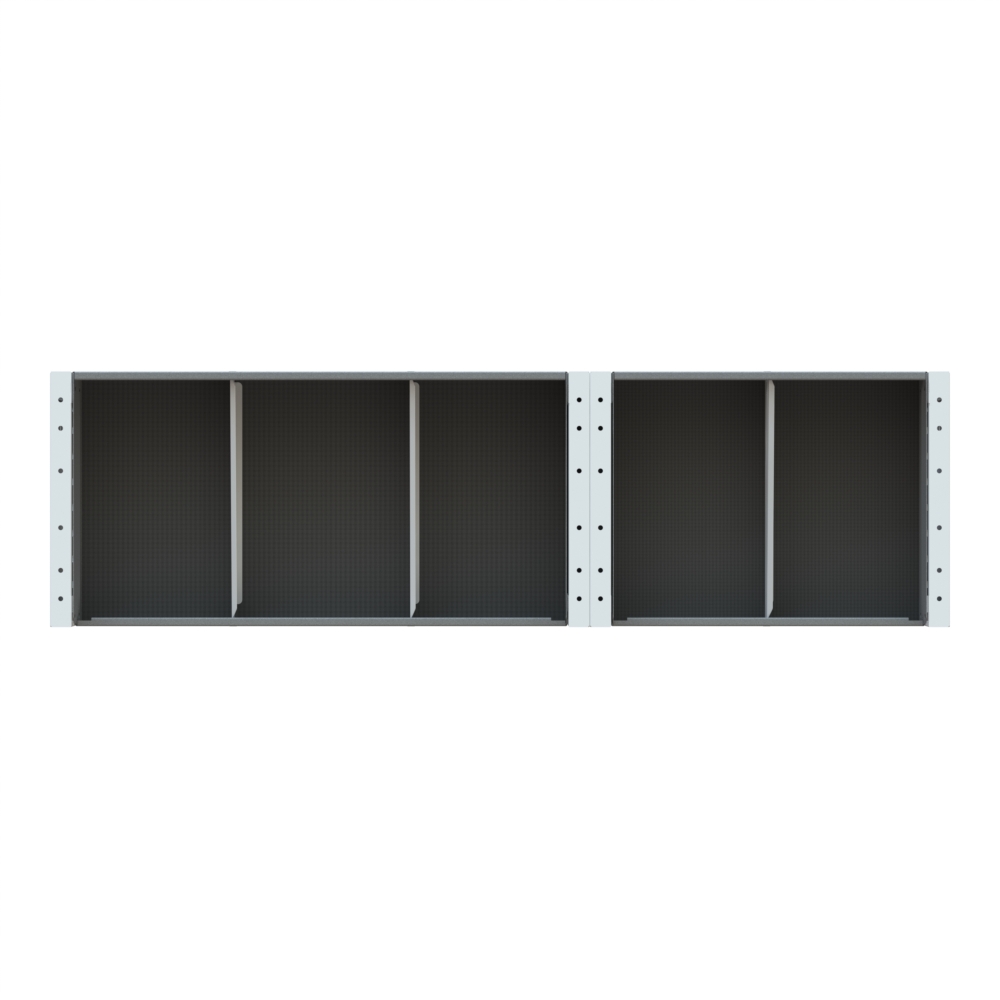 Ottimizza lo spazio interno del furgone permettendo di organizzare attrezzi, minuterie e materiali in modo ordinato e sempre accessibile.