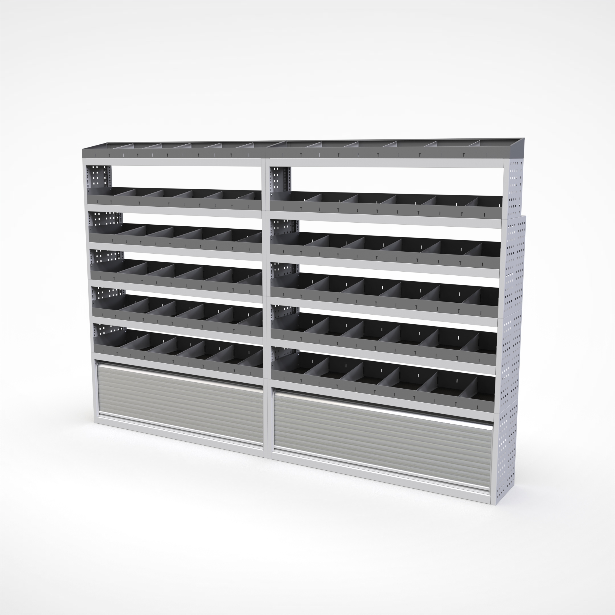 Ottimizza lo spazio interno del furgone permettendo di organizzare attrezzi, minuterie e materiali in modo ordinato e sempre accessibile.