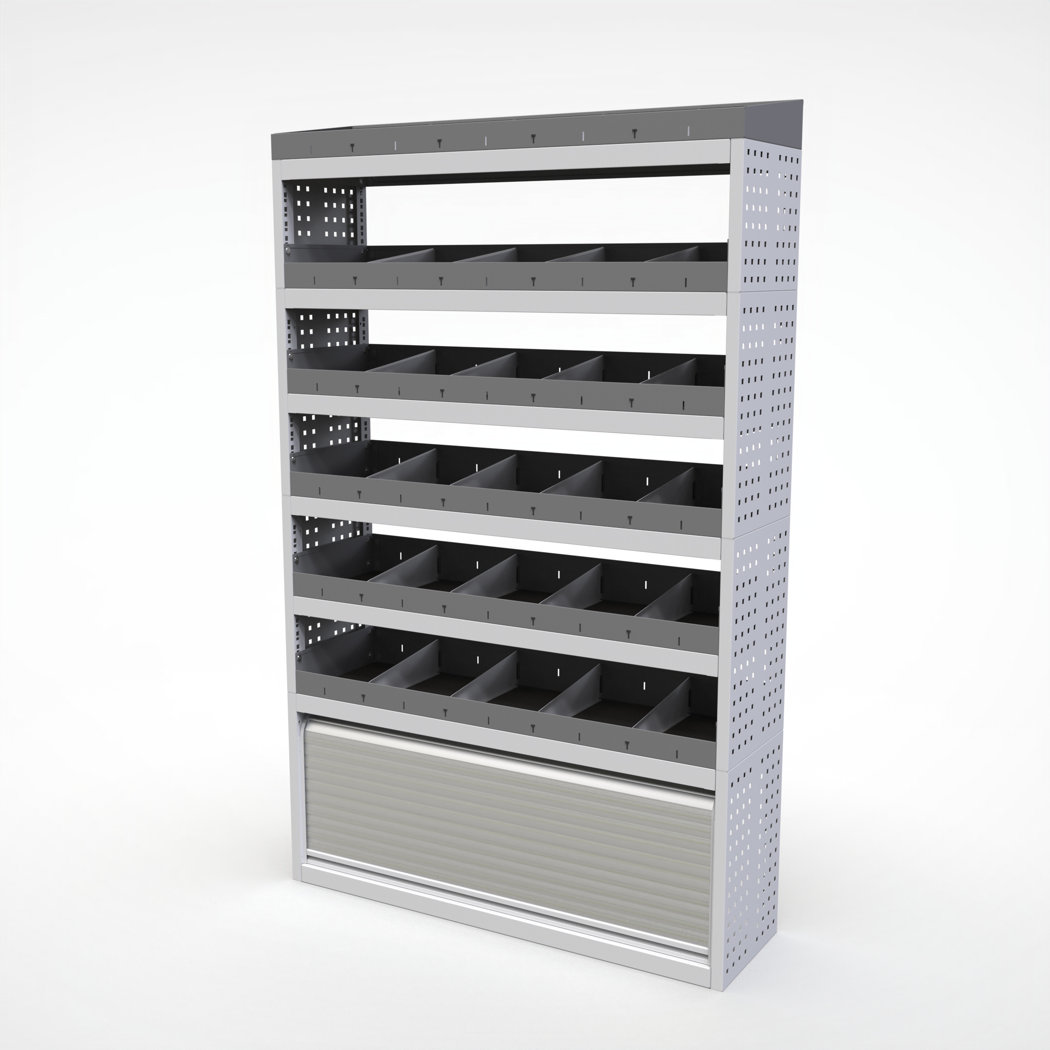 Ottimizza lo spazio interno del furgone permettendo di organizzare attrezzi, minuterie e materiali in modo ordinato e sempre accessibile.