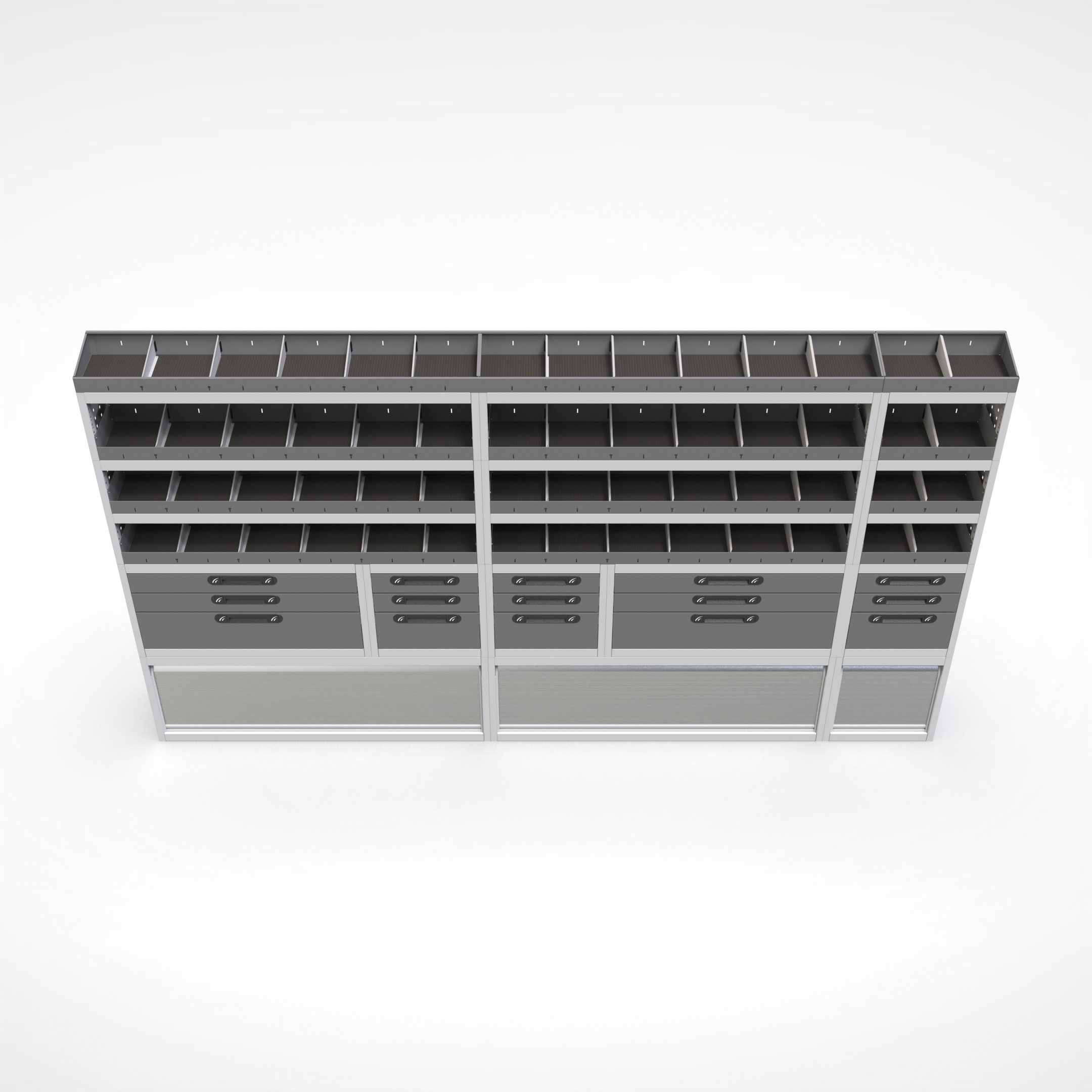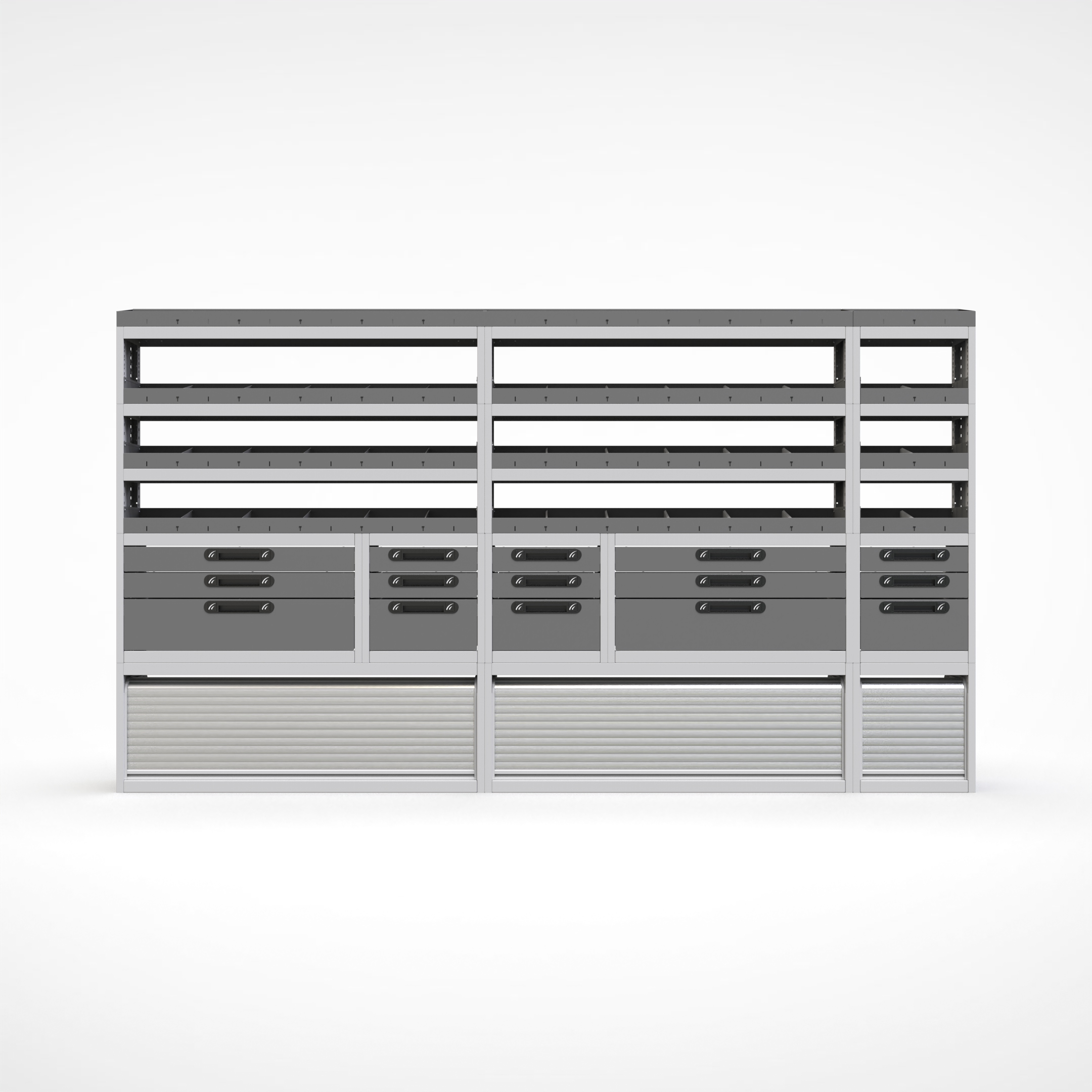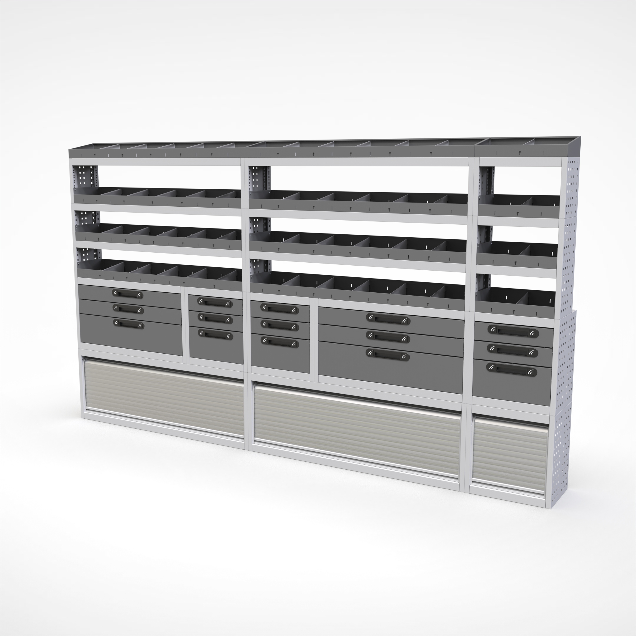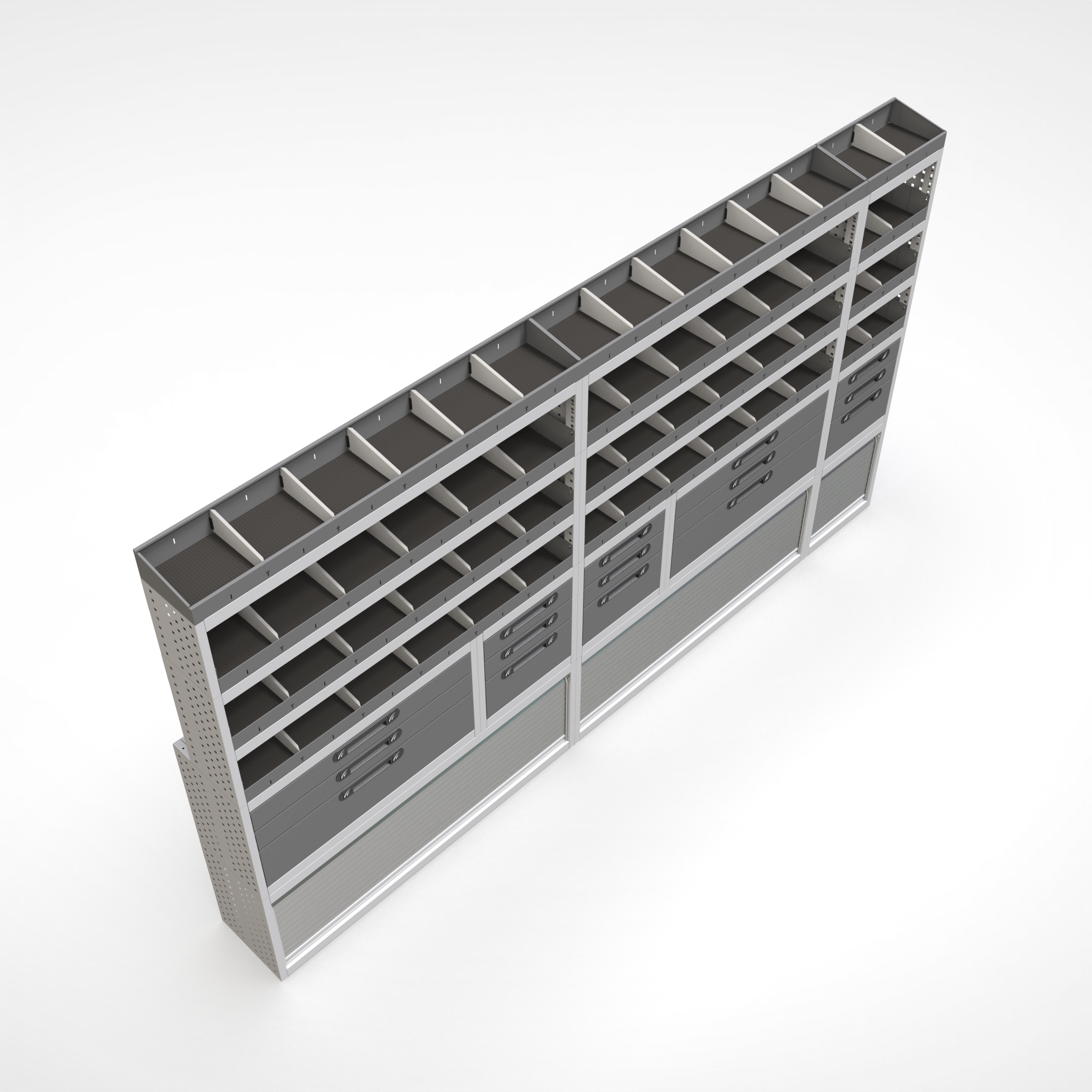 Ottimizza lo spazio interno del furgone permettendo di organizzare attrezzi, minuterie e materiali in modo ordinato e sempre accessibile.