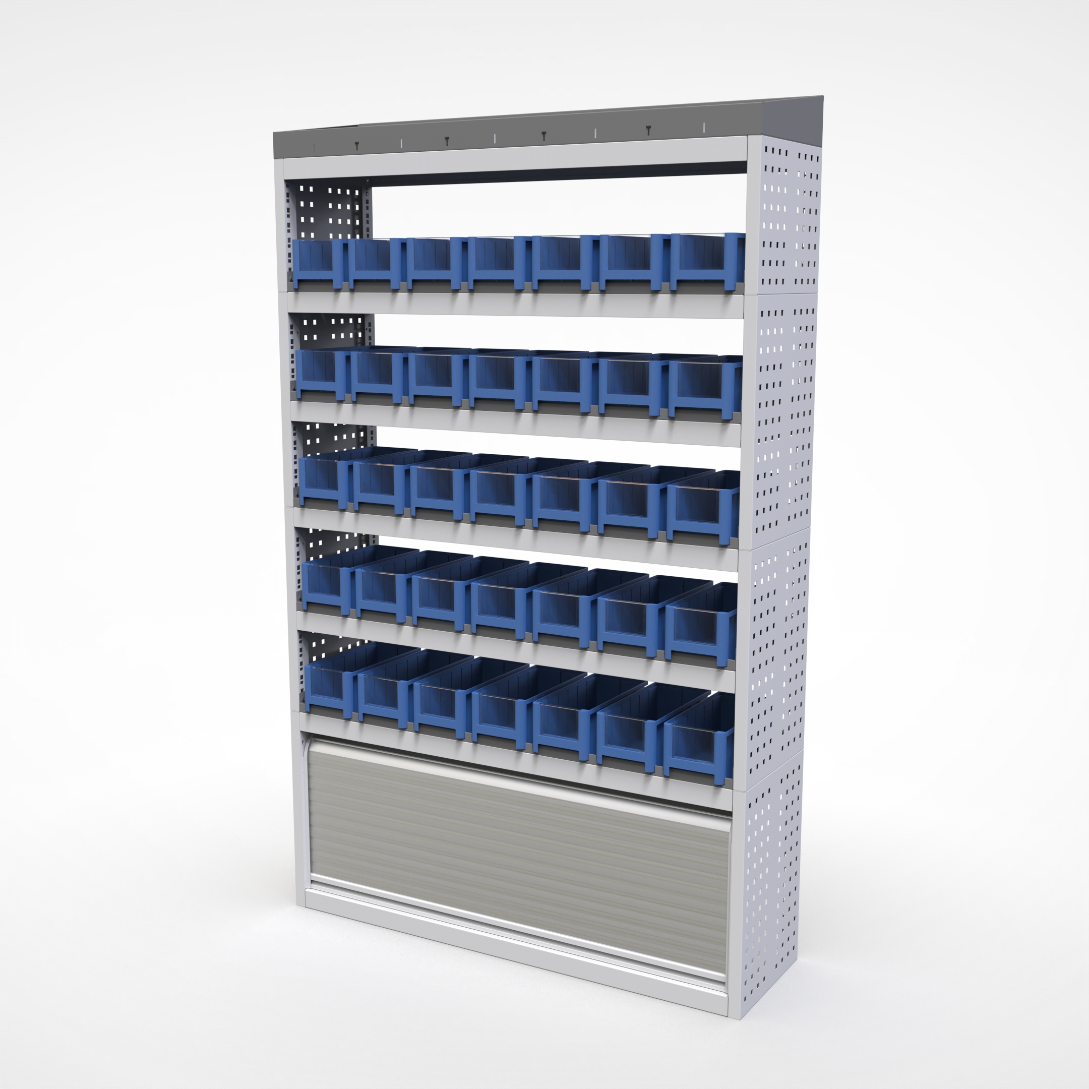 Ottimizza lo spazio interno del furgone permettendo di organizzare attrezzi, minuterie e materiali in modo ordinato e sempre accessibile.