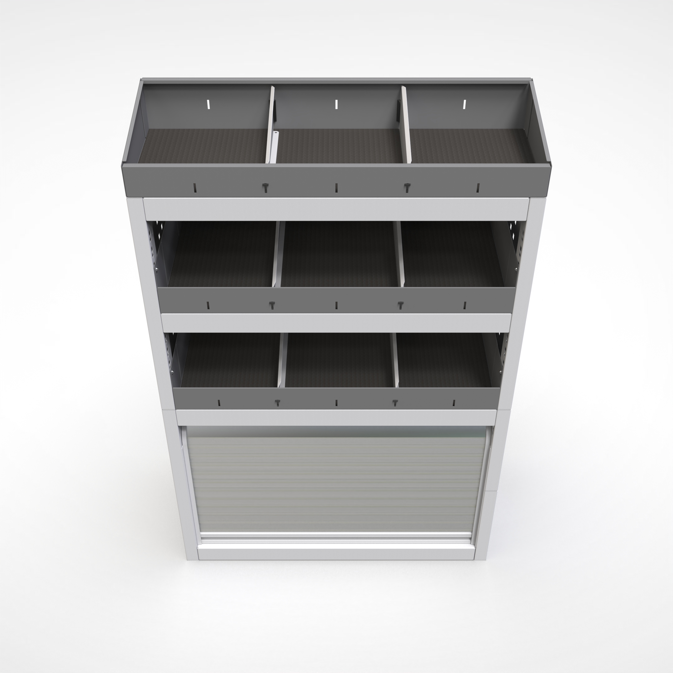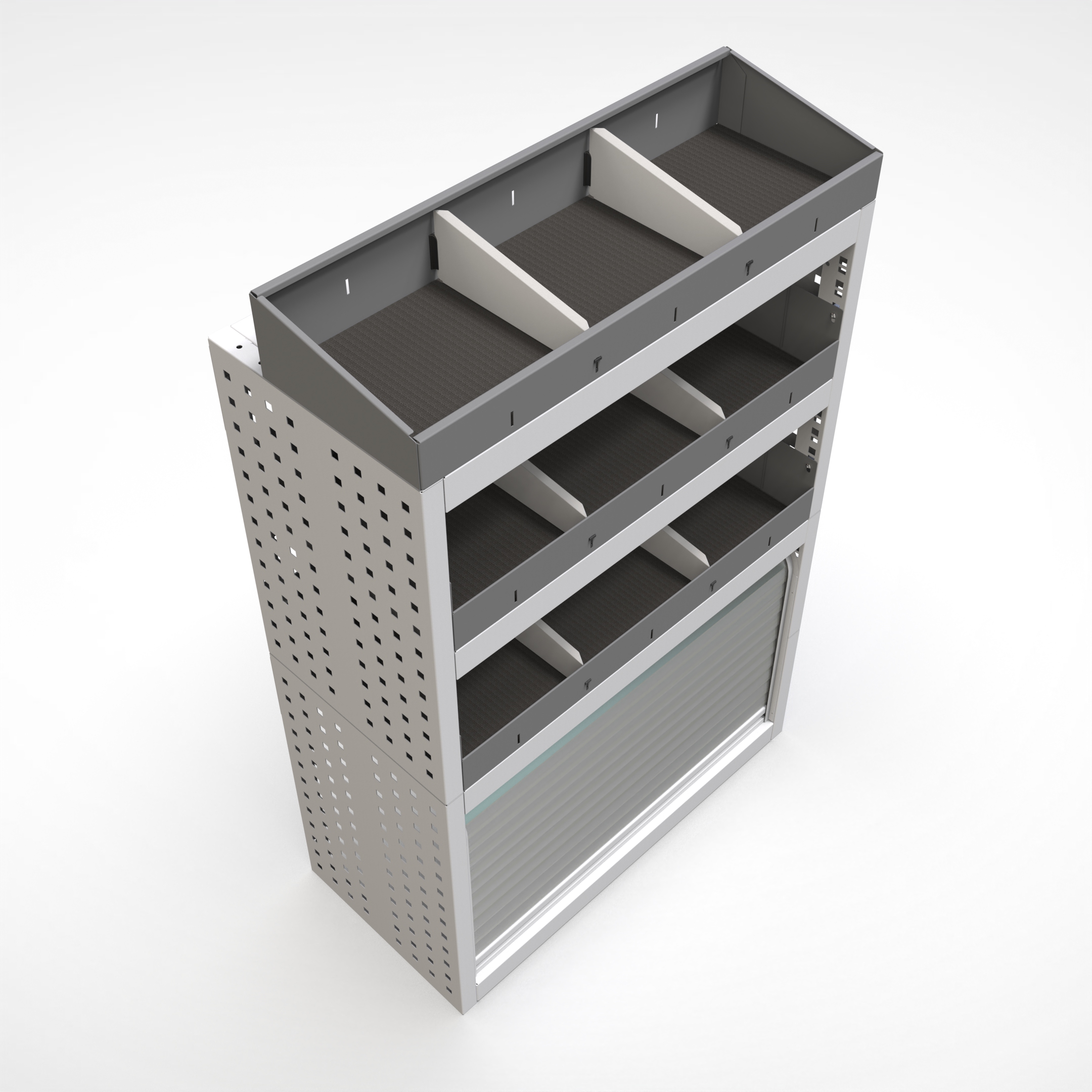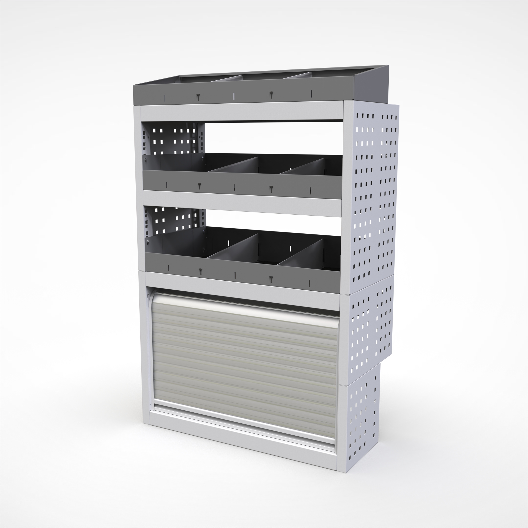 Ottimizza lo spazio interno del furgone permettendo di organizzare attrezzi, minuterie e materiali in modo ordinato e sempre accessibile.