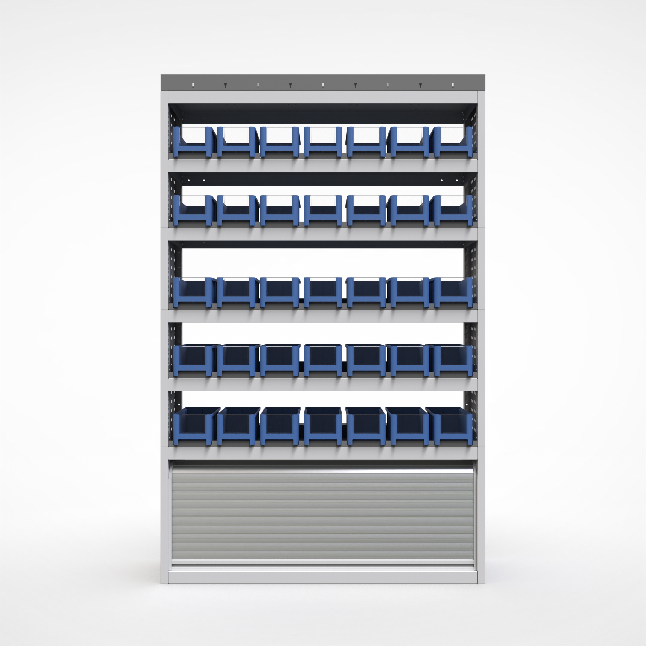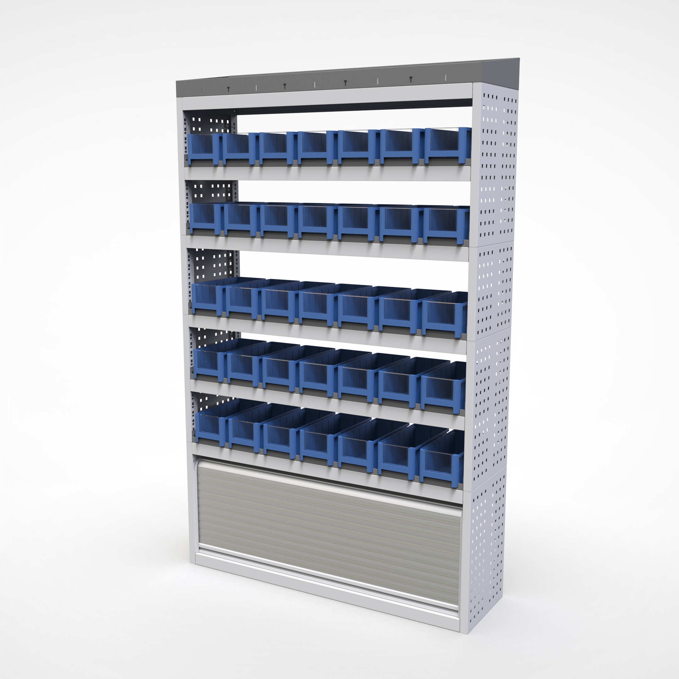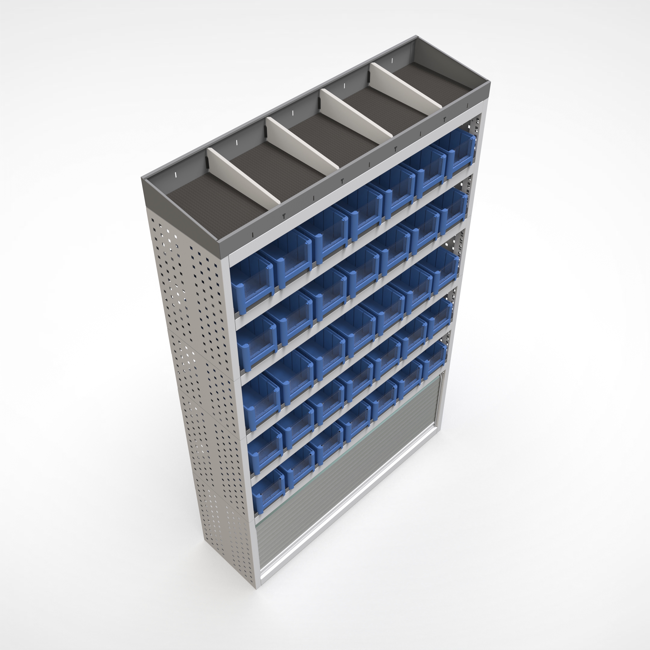 Ottimizza lo spazio interno del furgone permettendo di organizzare attrezzi, minuterie e materiali in modo ordinato e sempre accessibile.