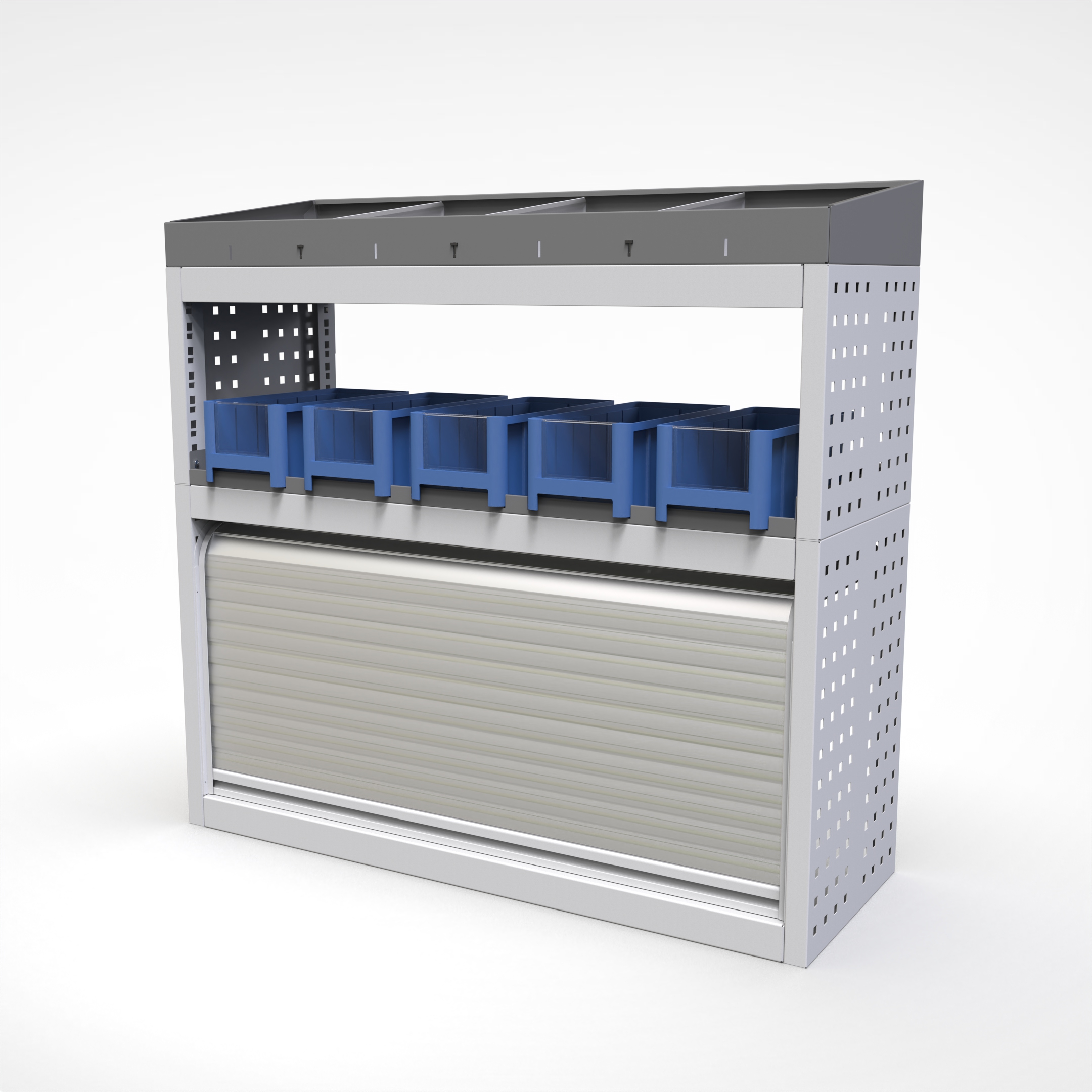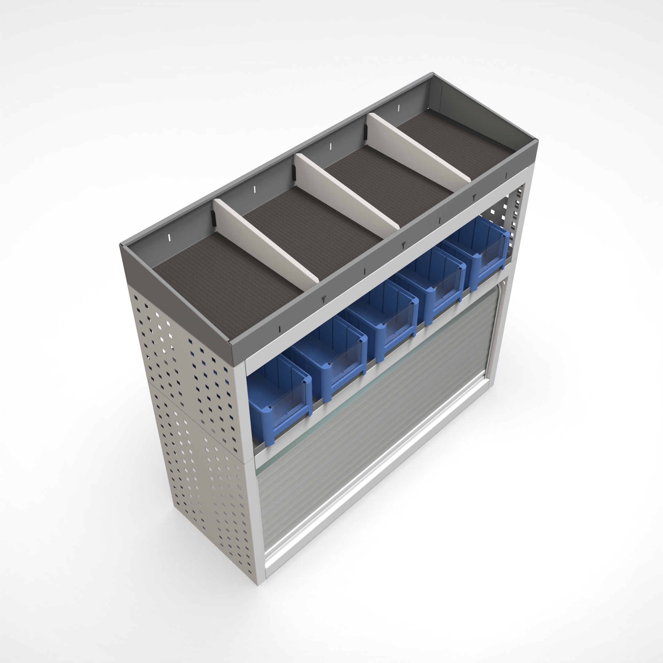 Ottimizza lo spazio interno del furgone permettendo di organizzare attrezzi, minuterie e materiali in modo ordinato e sempre accessibile.