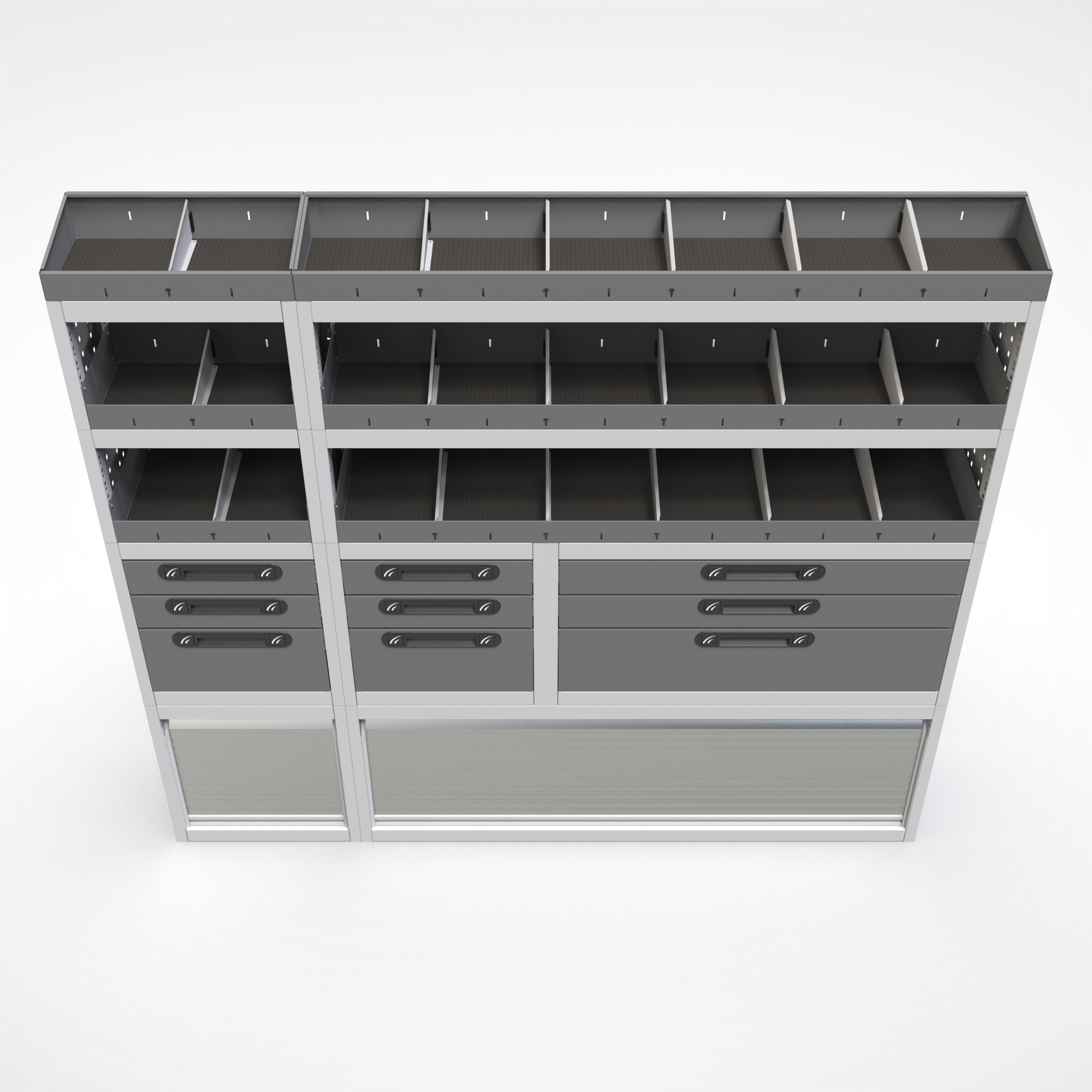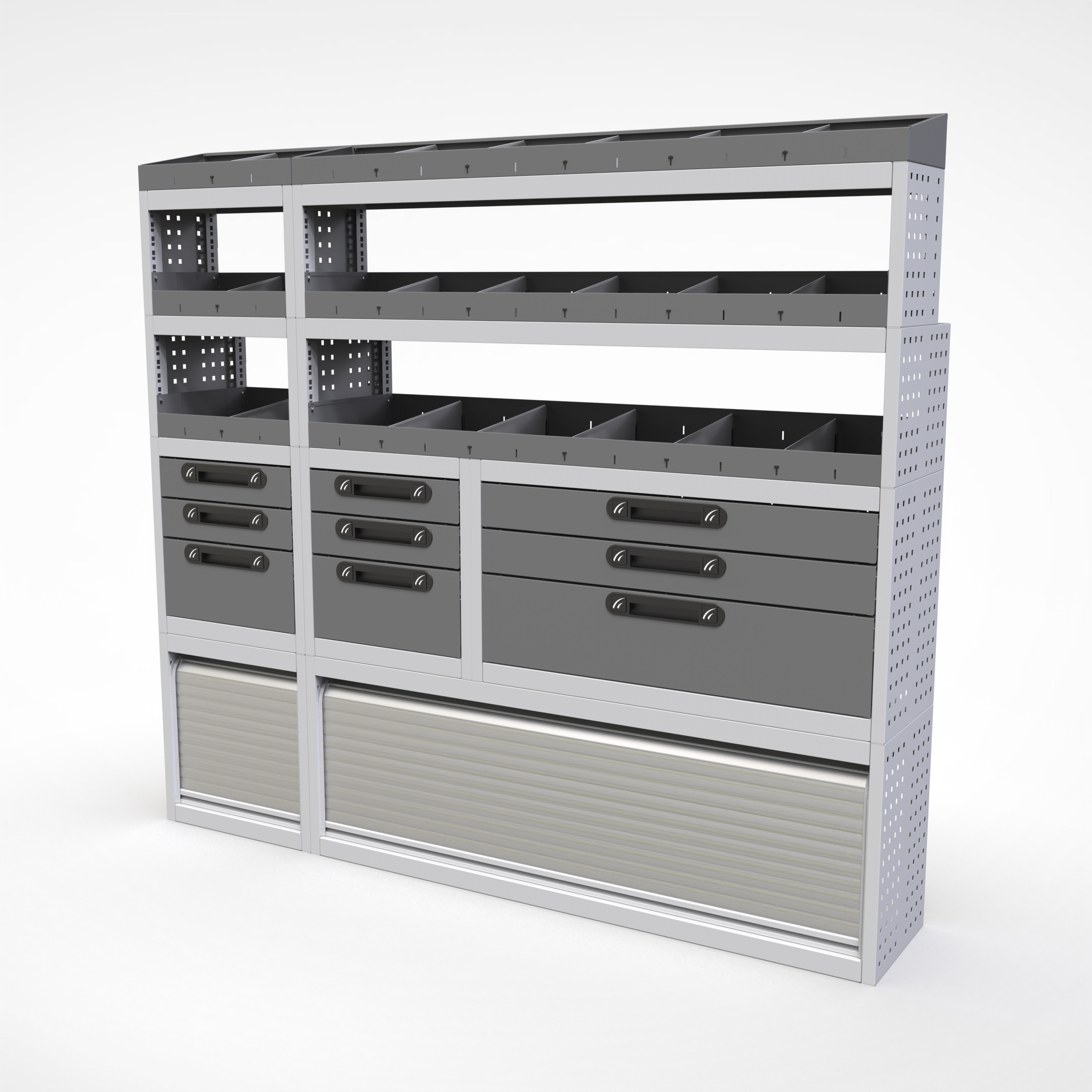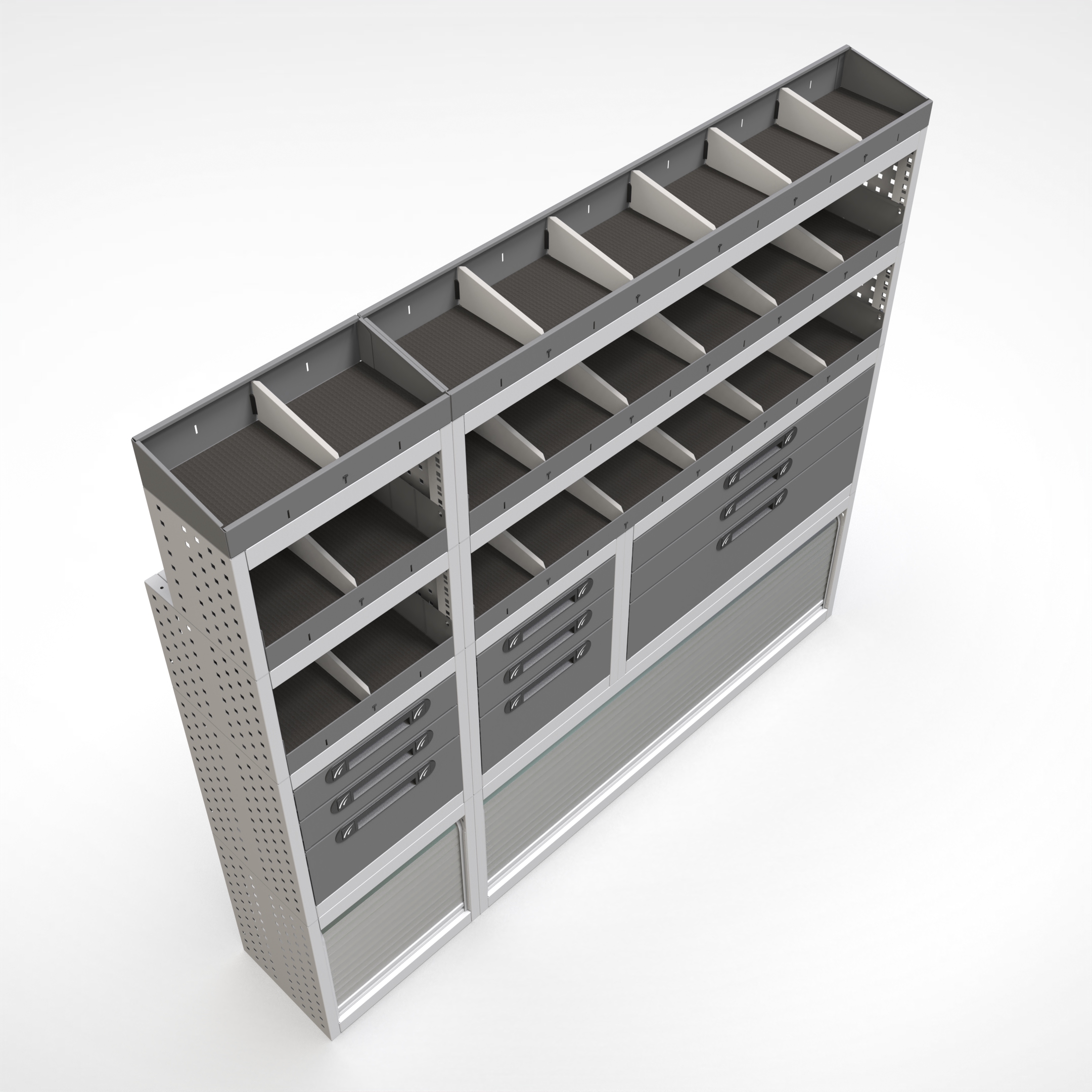 Ottimizza lo spazio interno del furgone permettendo di organizzare attrezzi, minuterie e materiali in modo ordinato e sempre accessibile.