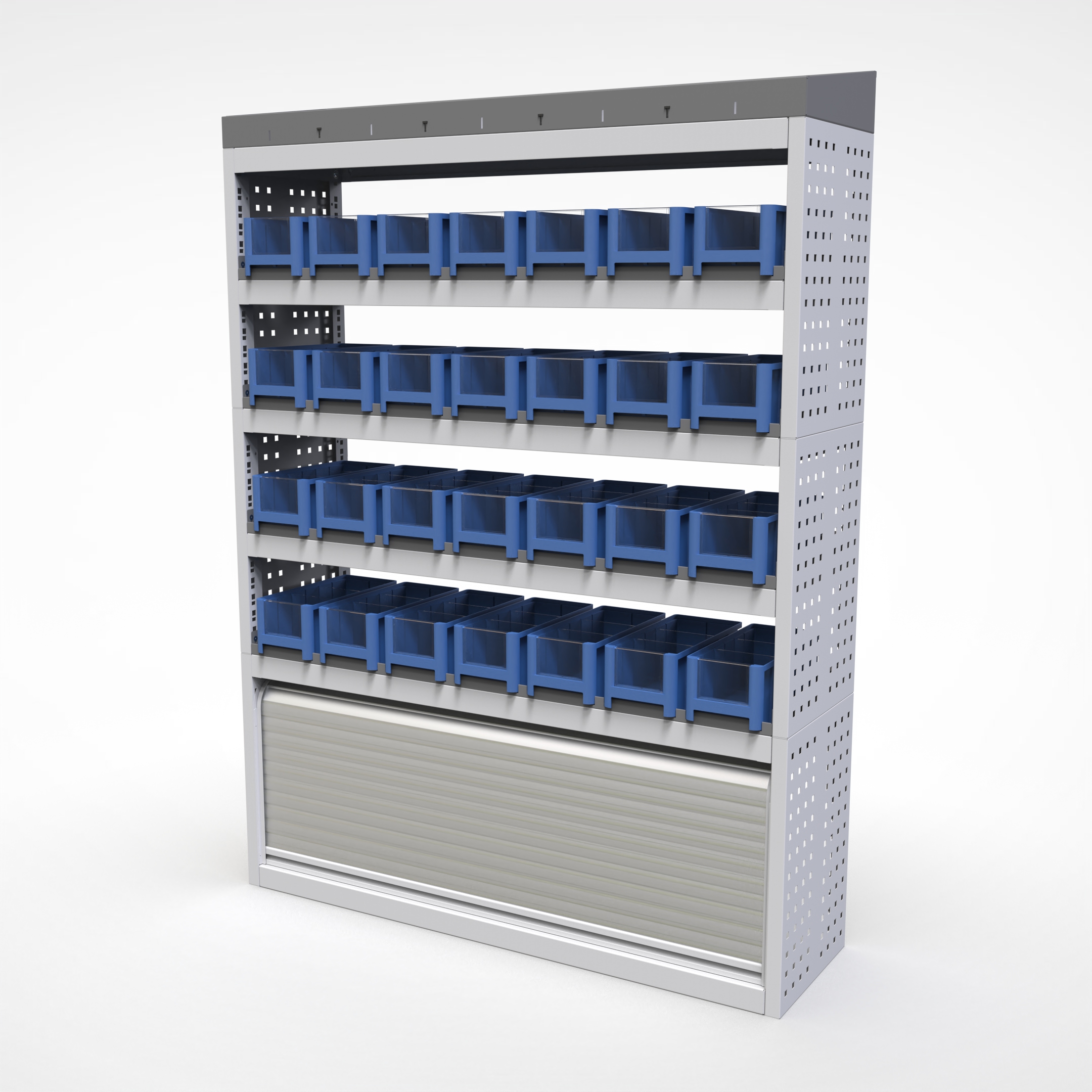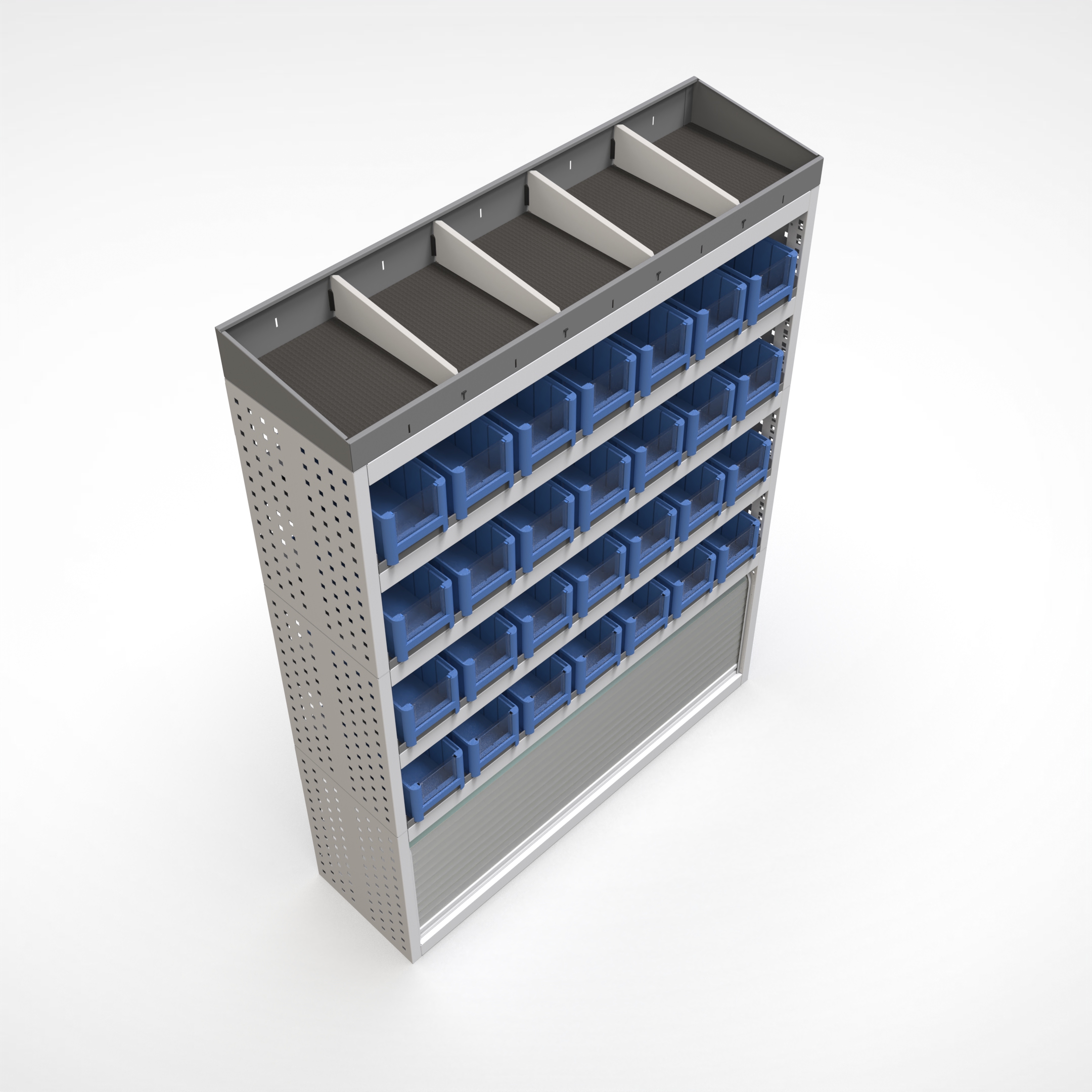 Ottimizza lo spazio interno del furgone permettendo di organizzare attrezzi, minuterie e materiali in modo ordinato e sempre accessibile.