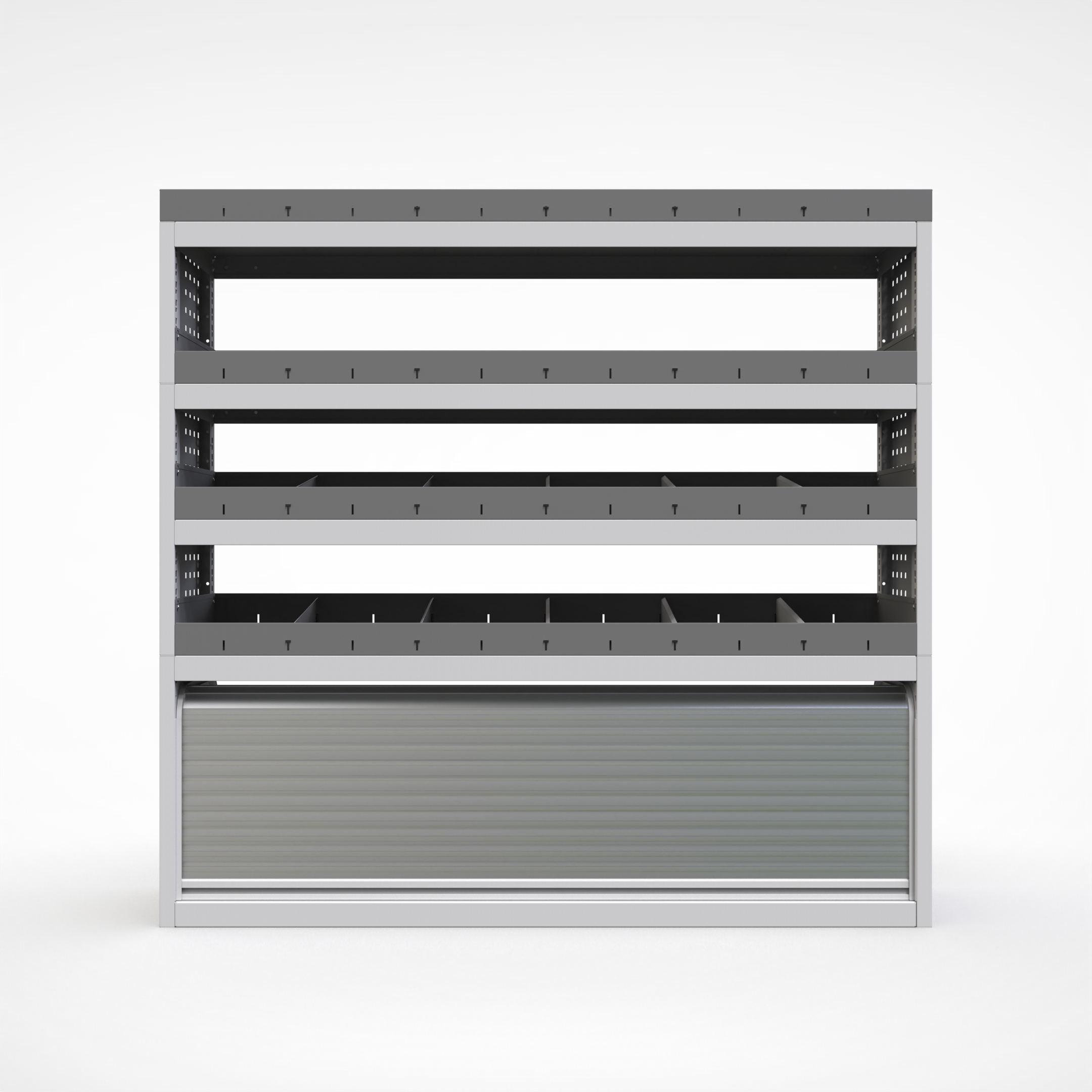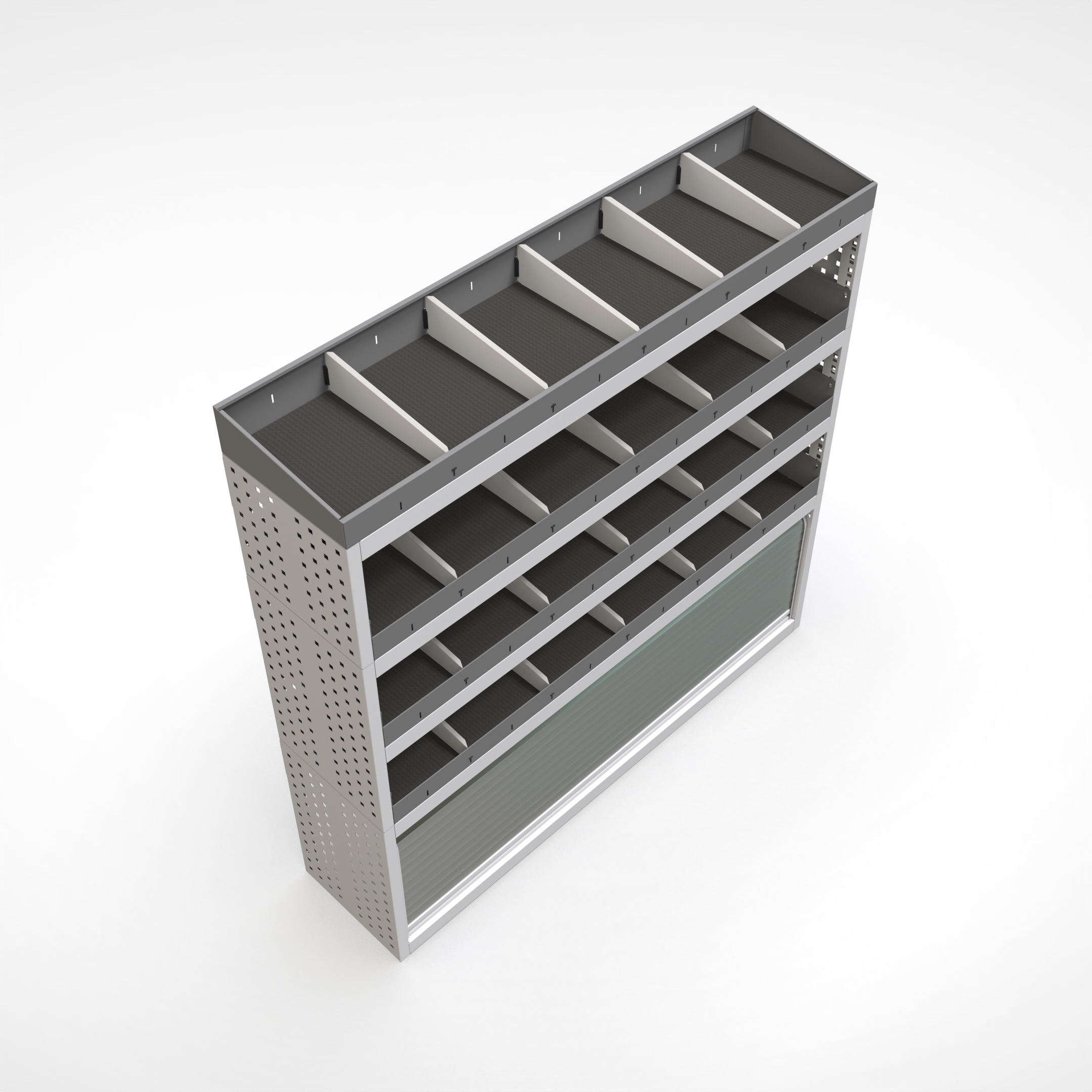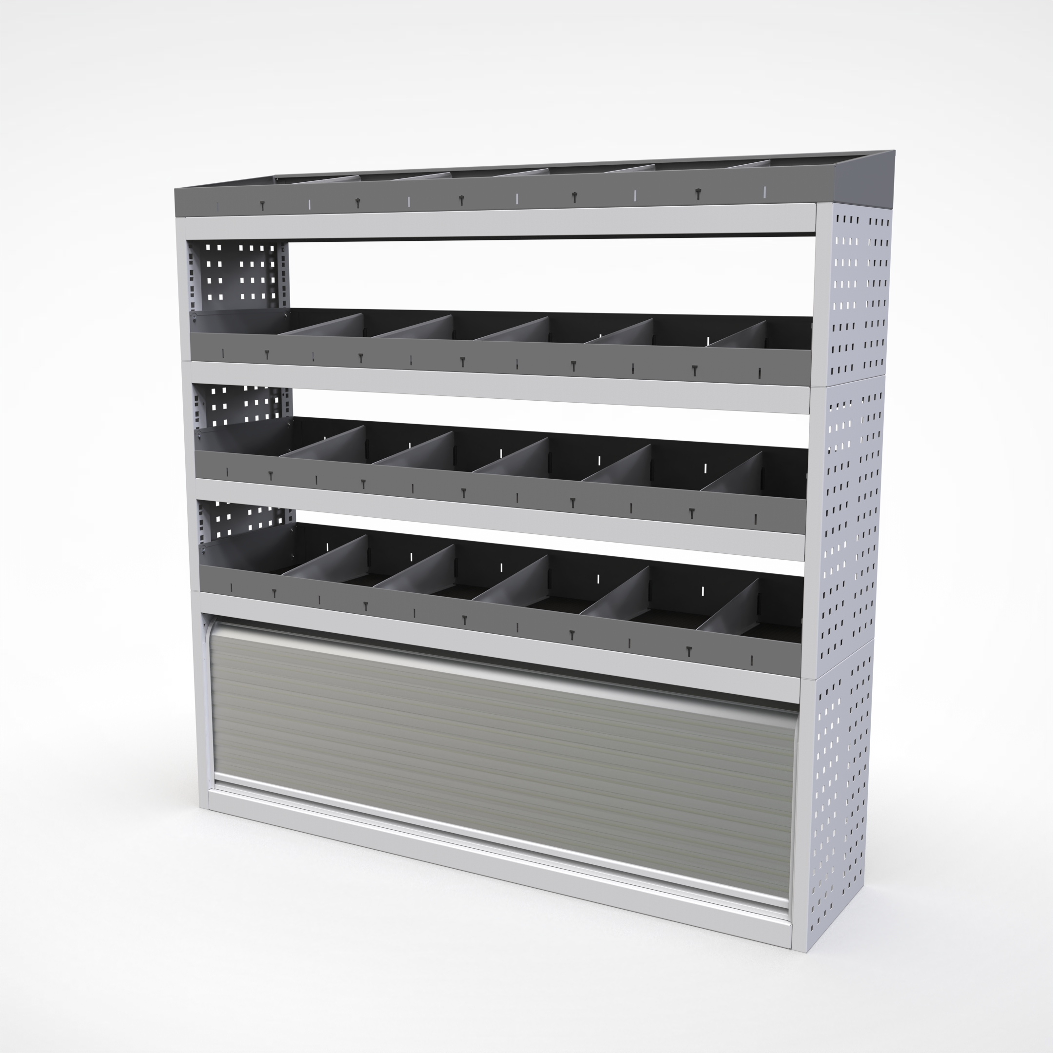 Ottimizza lo spazio interno del furgone permettendo di organizzare attrezzi, minuterie e materiali in modo ordinato e sempre accessibile.