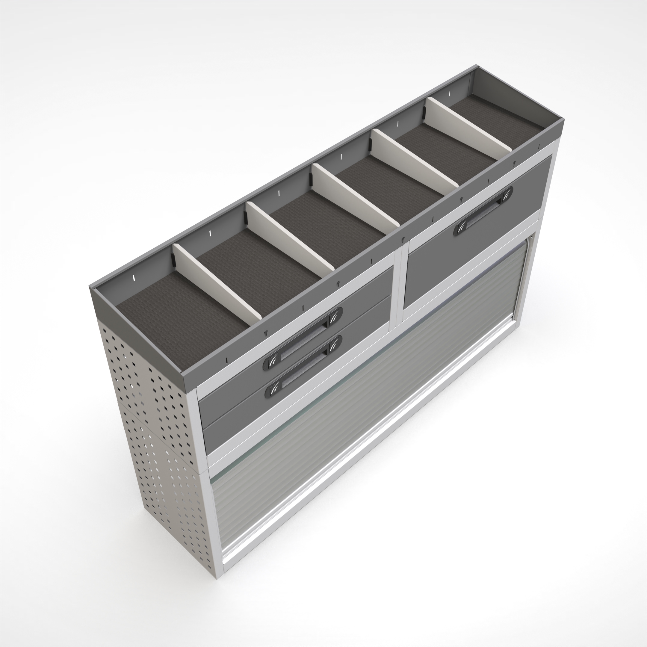 Ottimizza lo spazio interno del furgone permettendo di organizzare attrezzi, minuterie e materiali in modo ordinato e sempre accessibile.