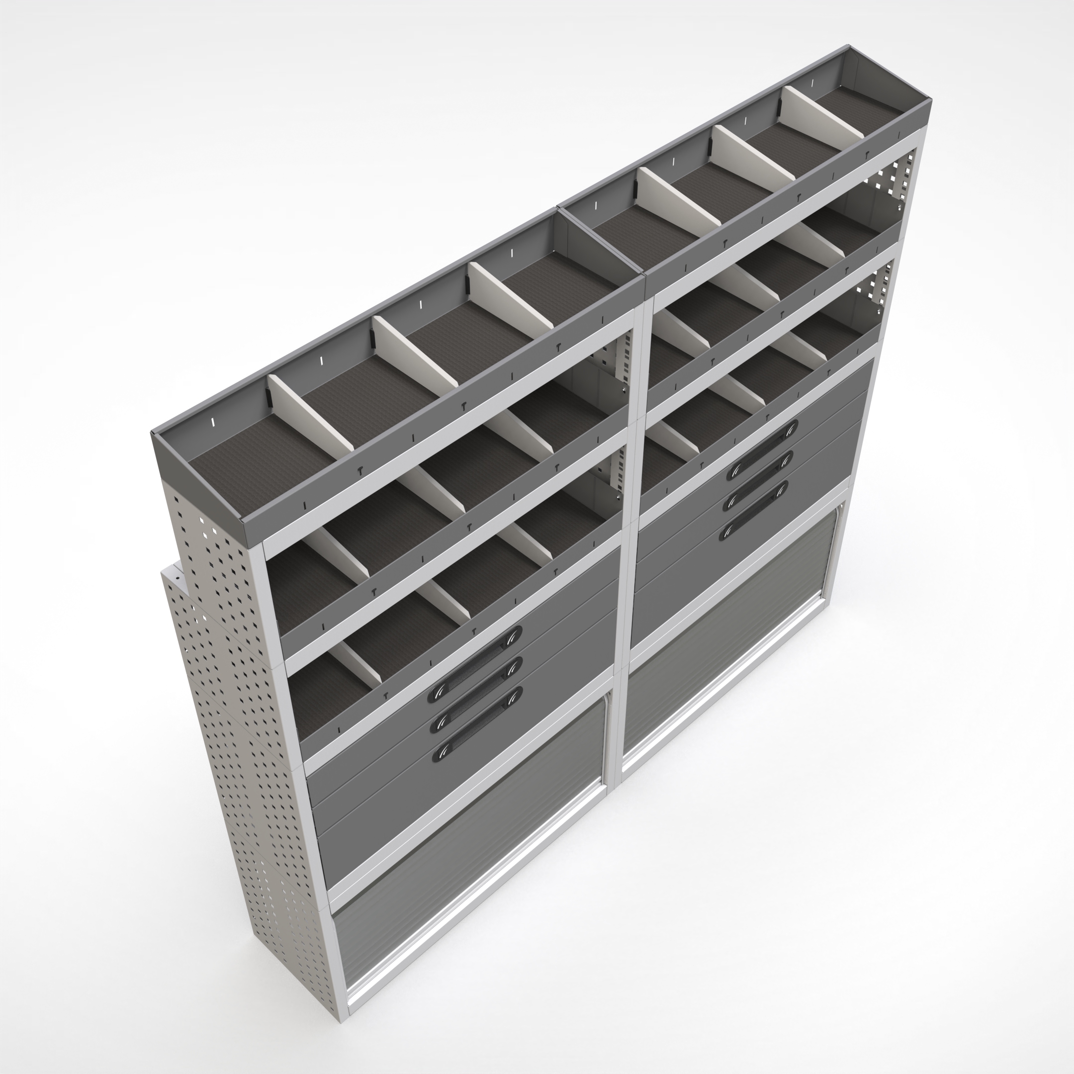 A cosa serve questo prodotto? Ottimizza lo spazio interno del furgone permettendo di organizzare attrezzi, minuterie e materiali in modo ordinato e sempre accessibile.