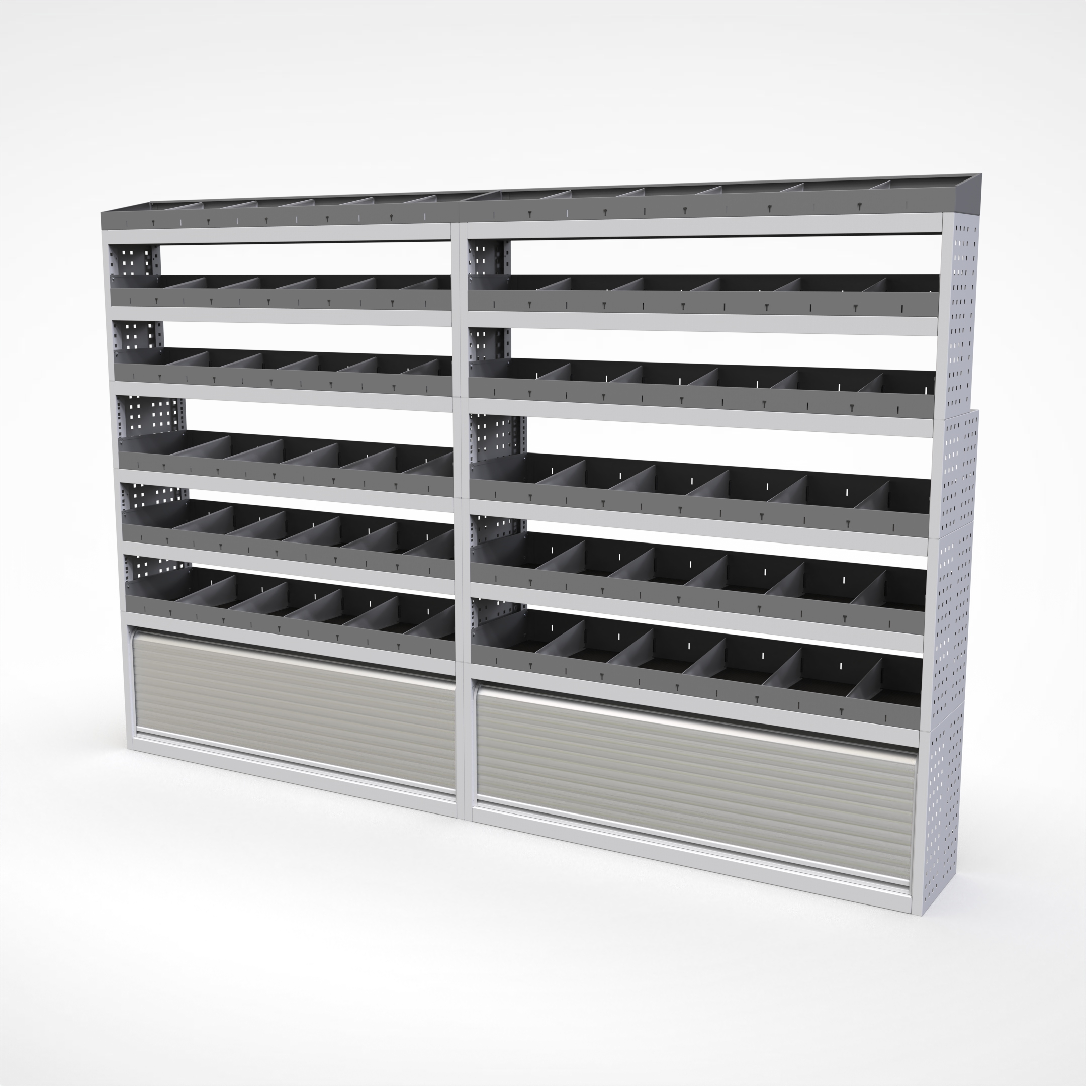 Ottimizza lo spazio interno del furgone permettendo di organizzare attrezzi, minuterie e materiali in modo ordinato e sempre accessibile.