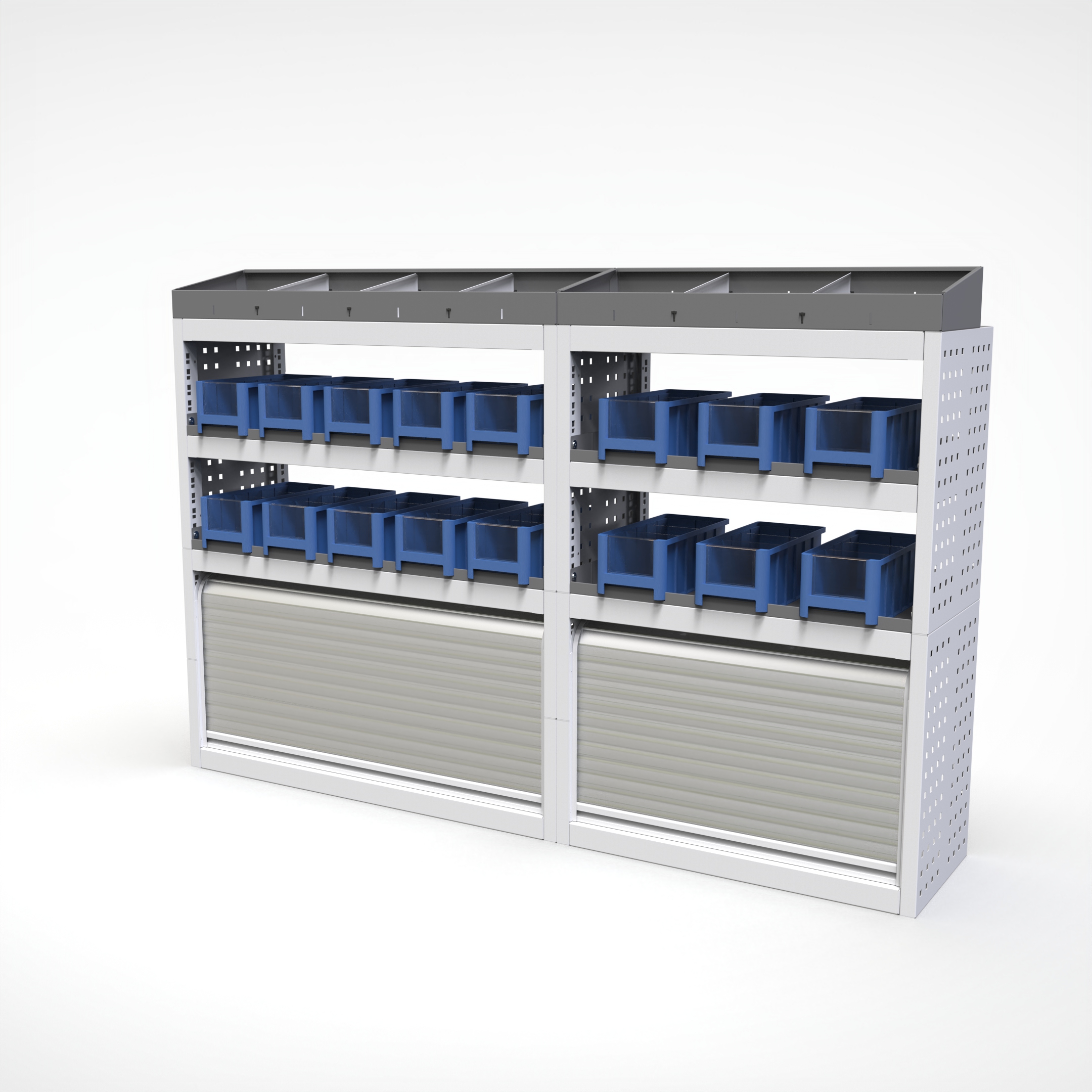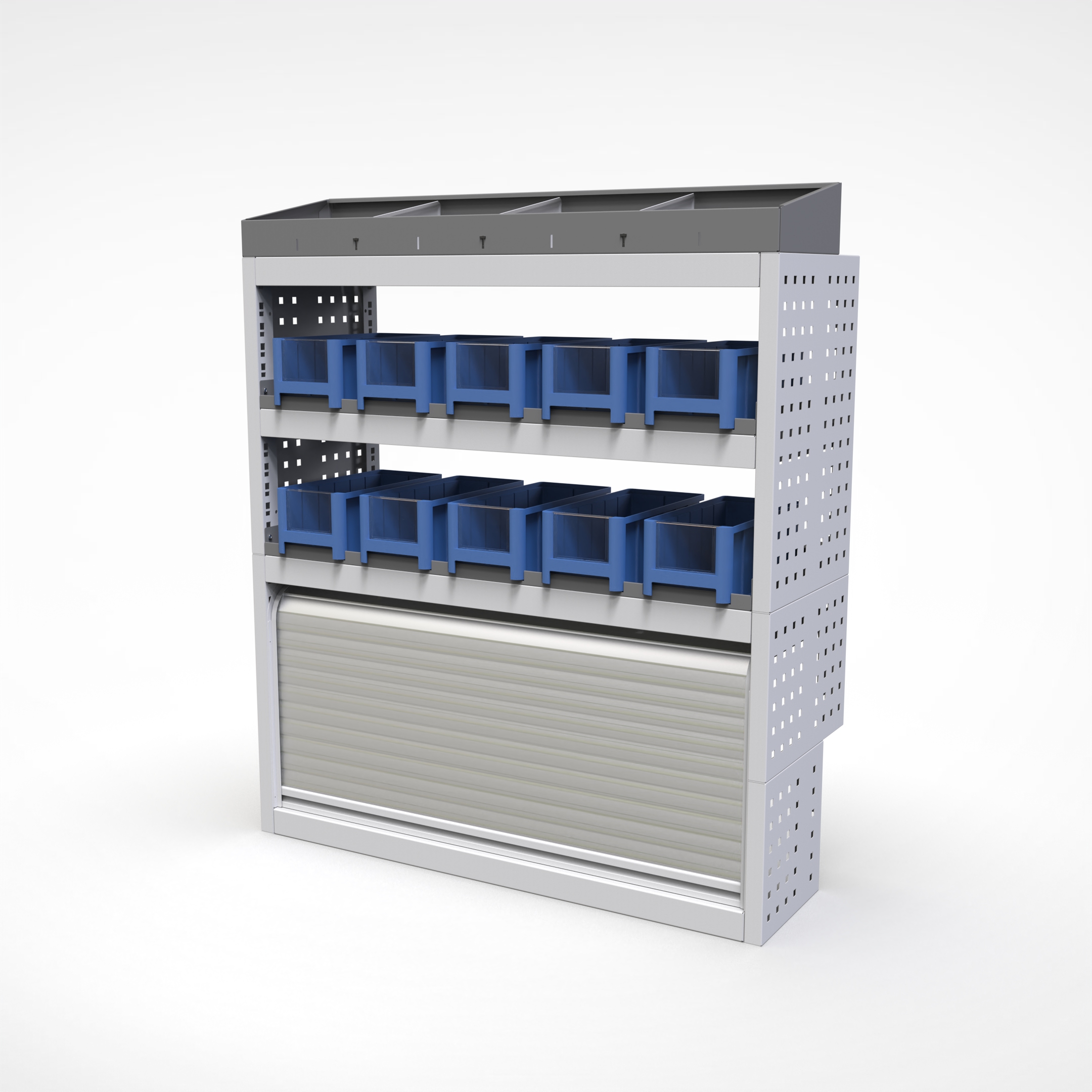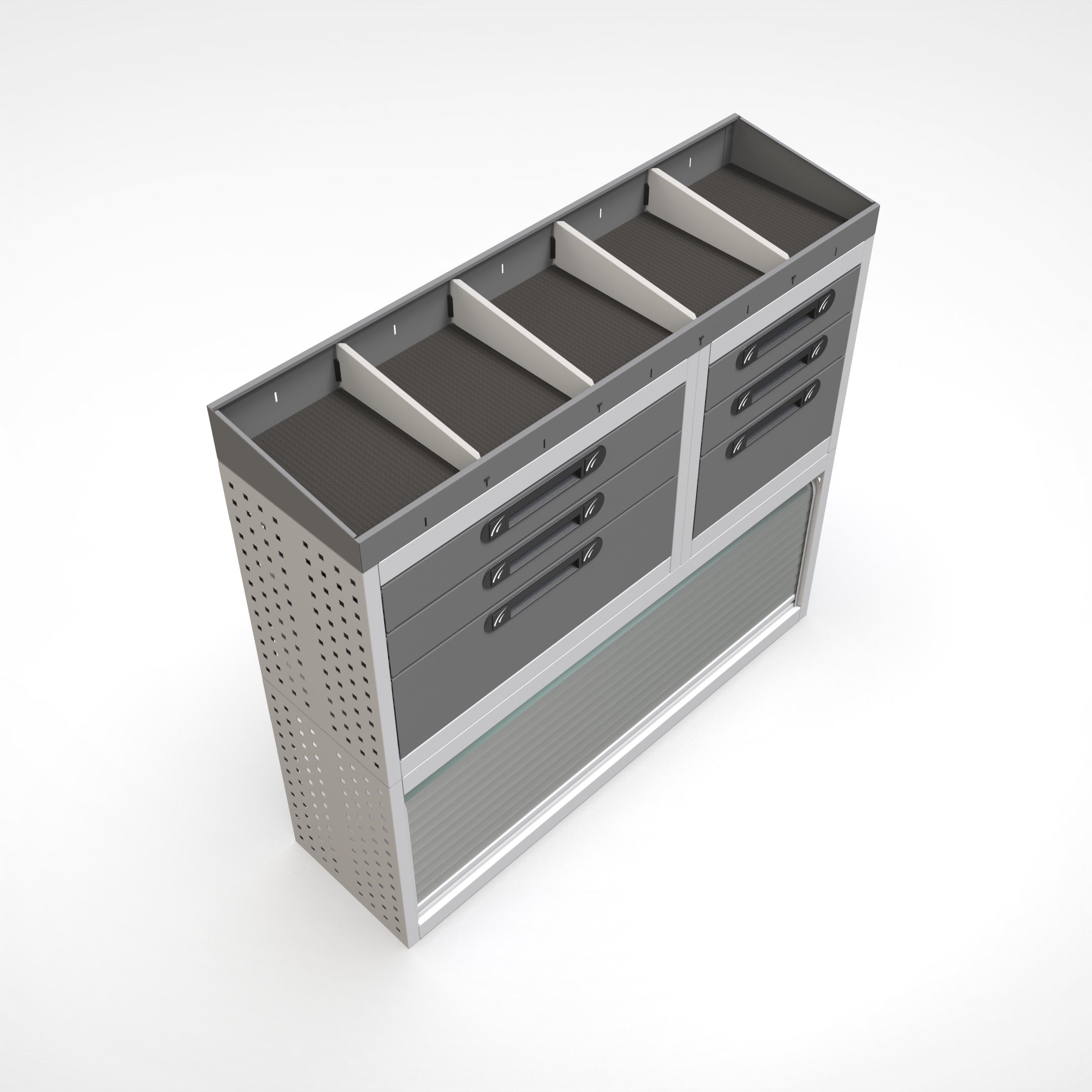 Ottimizza lo spazio interno del furgone permettendo di organizzare attrezzi, minuterie e materiali in modo ordinato e sempre accessibile.