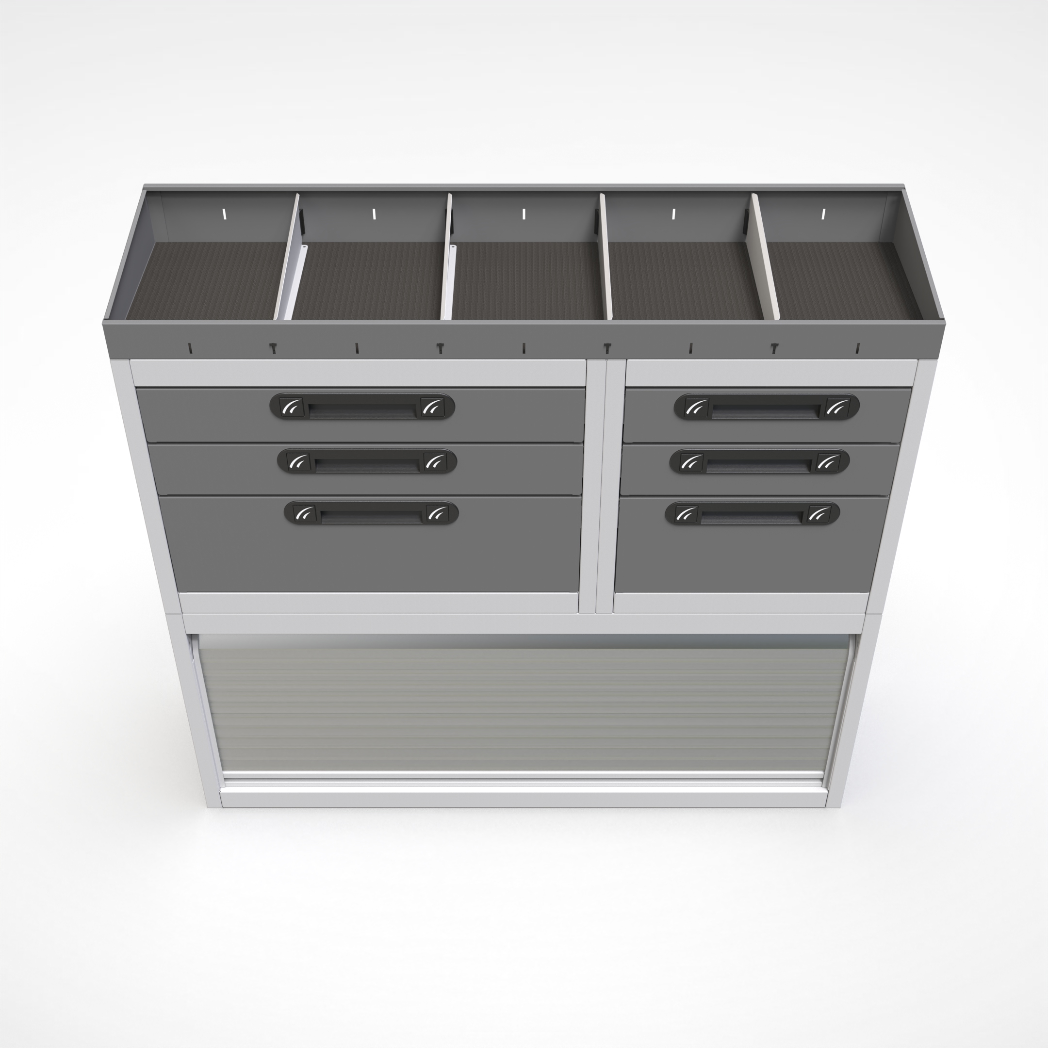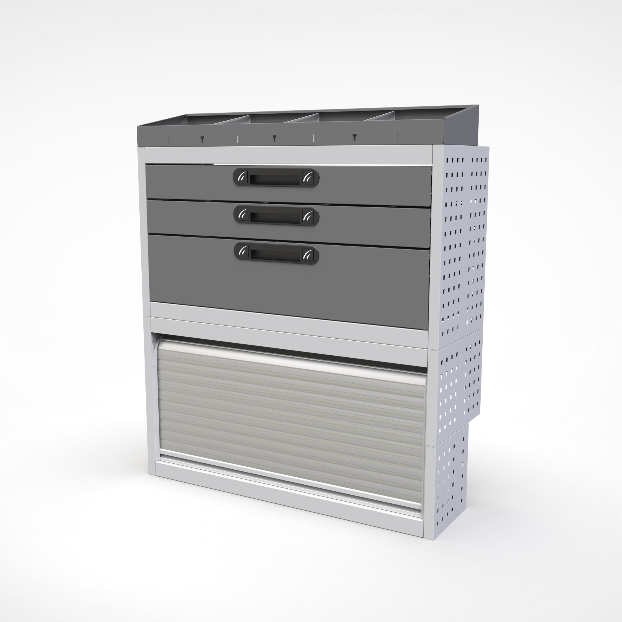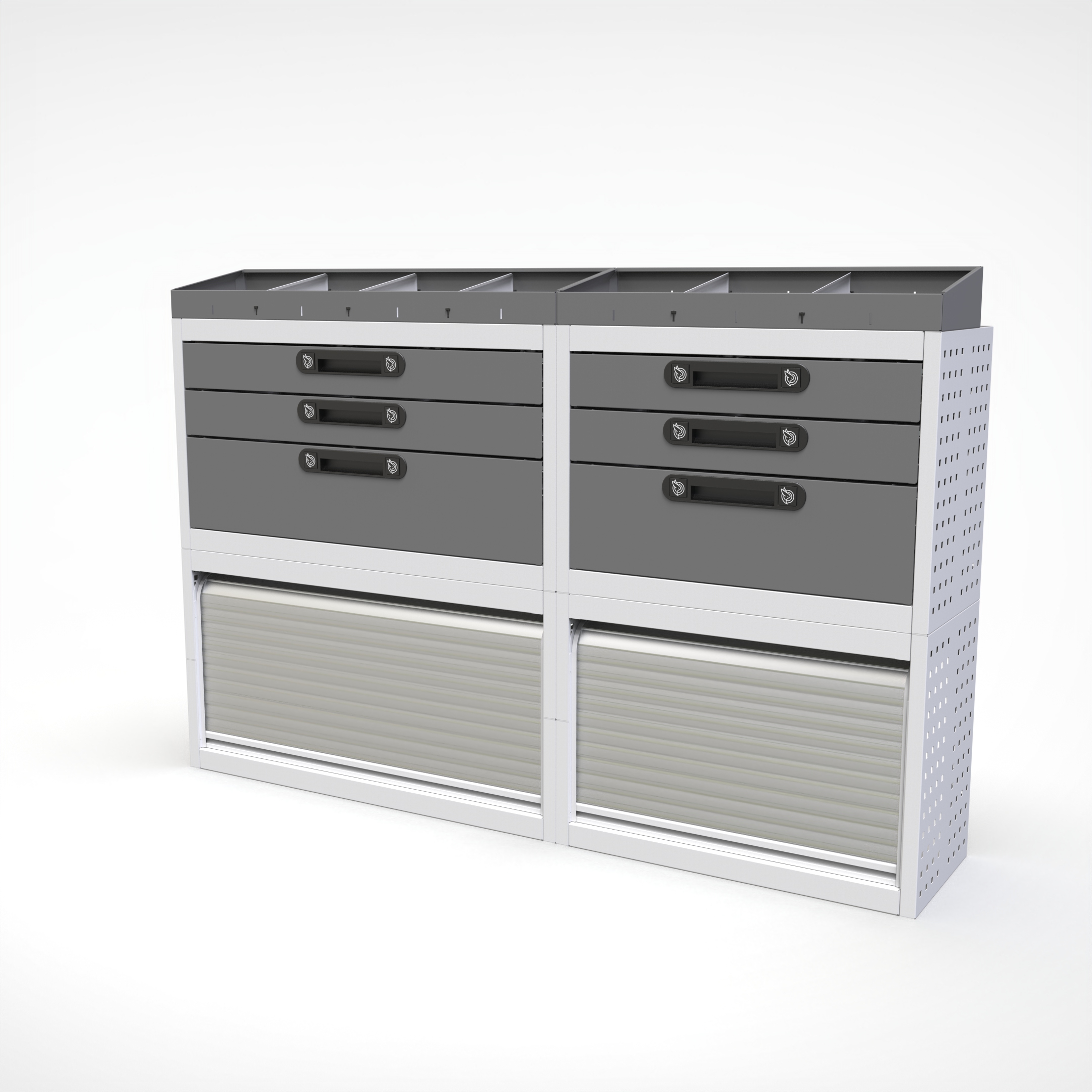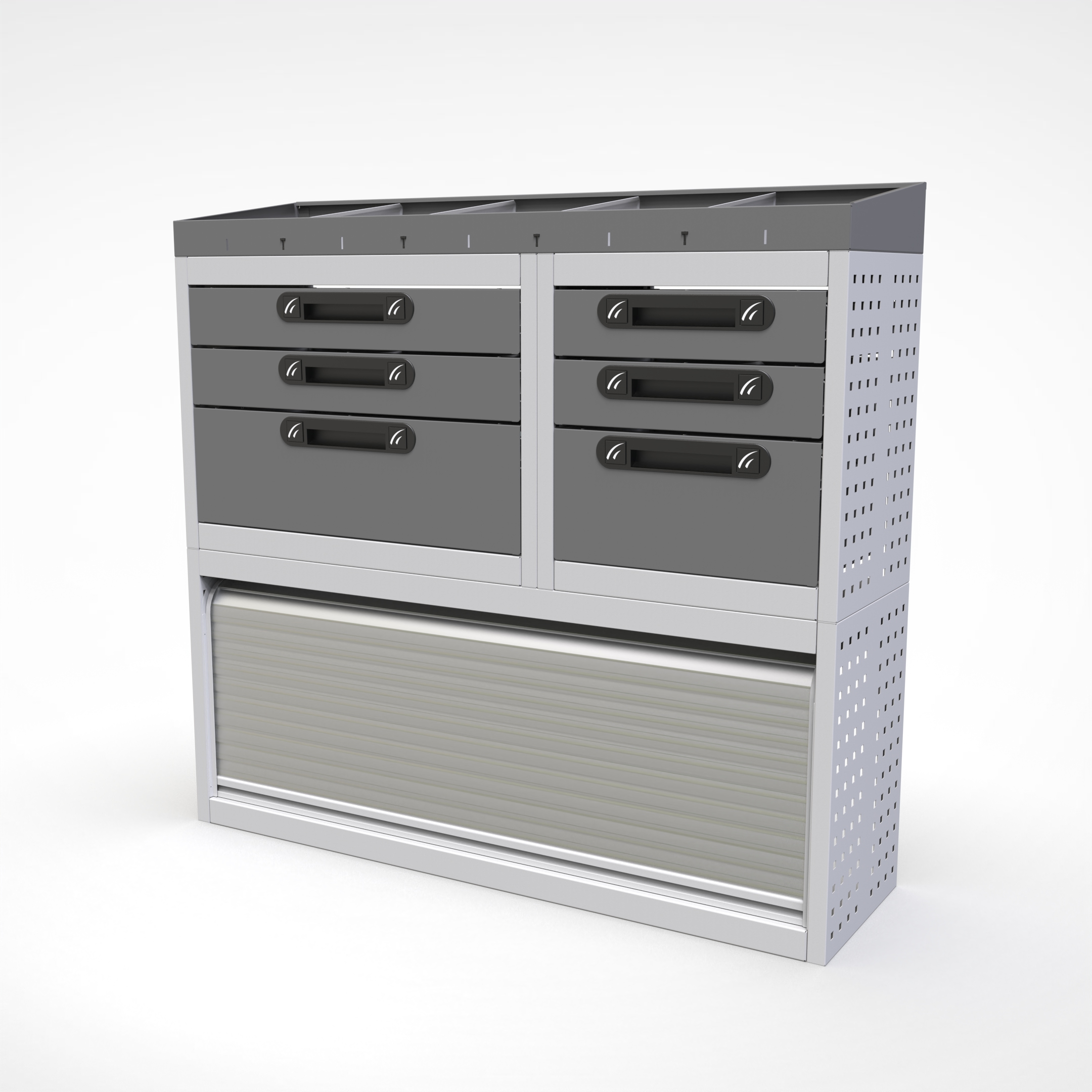 Ottimizza lo spazio interno del furgone permettendo di organizzare attrezzi, minuterie e materiali in modo ordinato e sempre accessibile.
