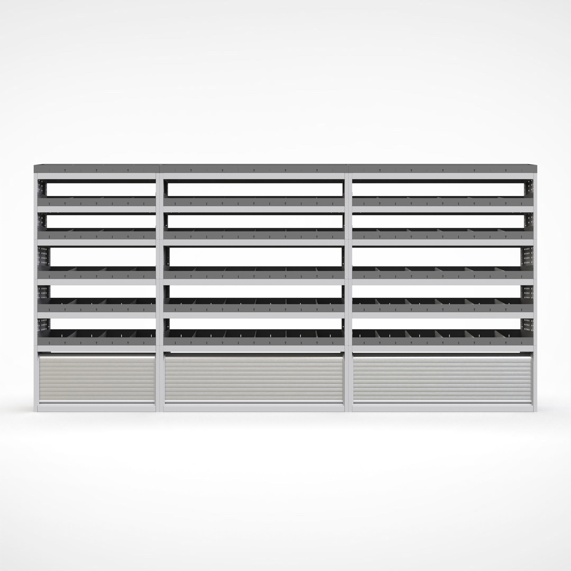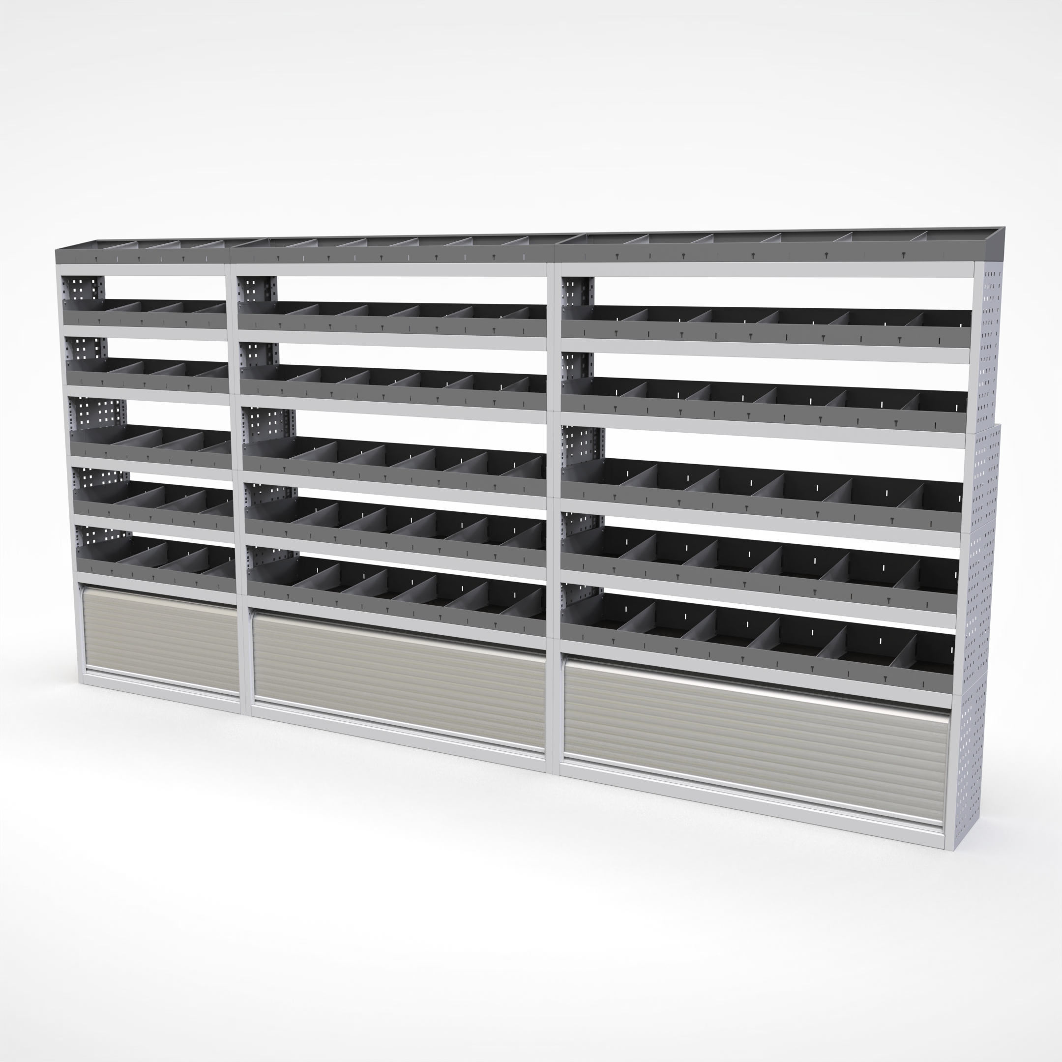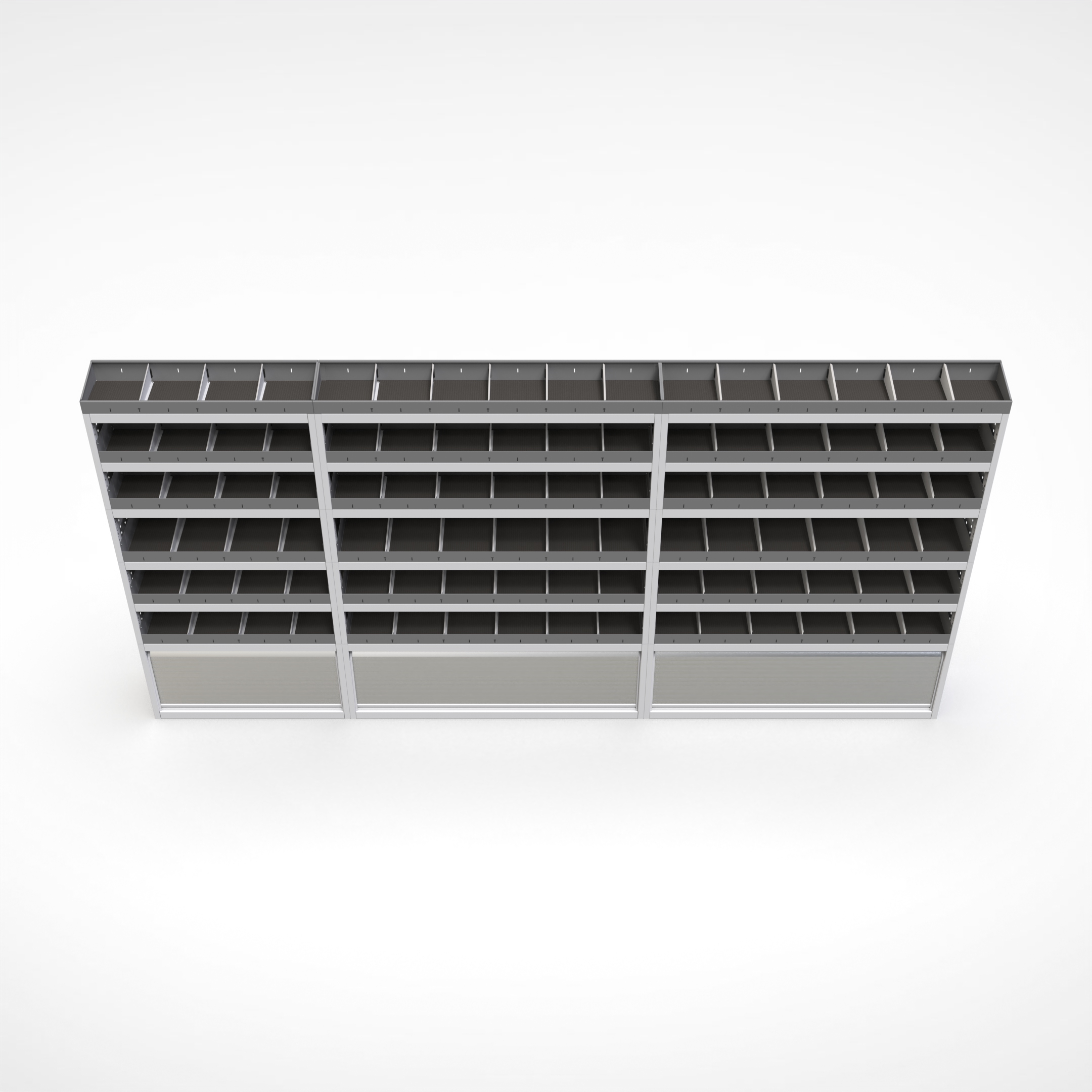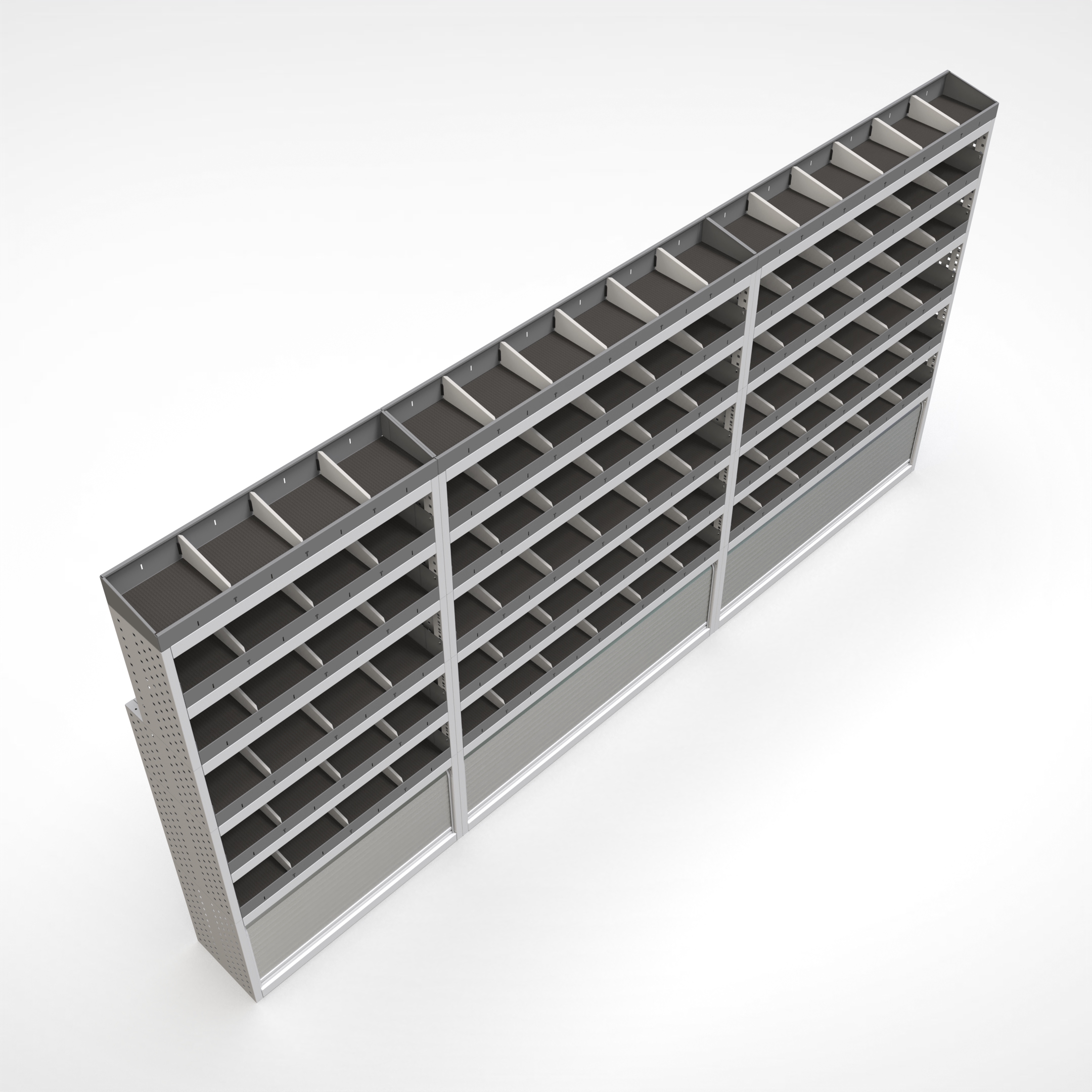 Ottimizza lo spazio interno del furgone permettendo di organizzare attrezzi, minuterie e materiali in modo ordinato e sempre accessibile.